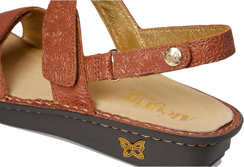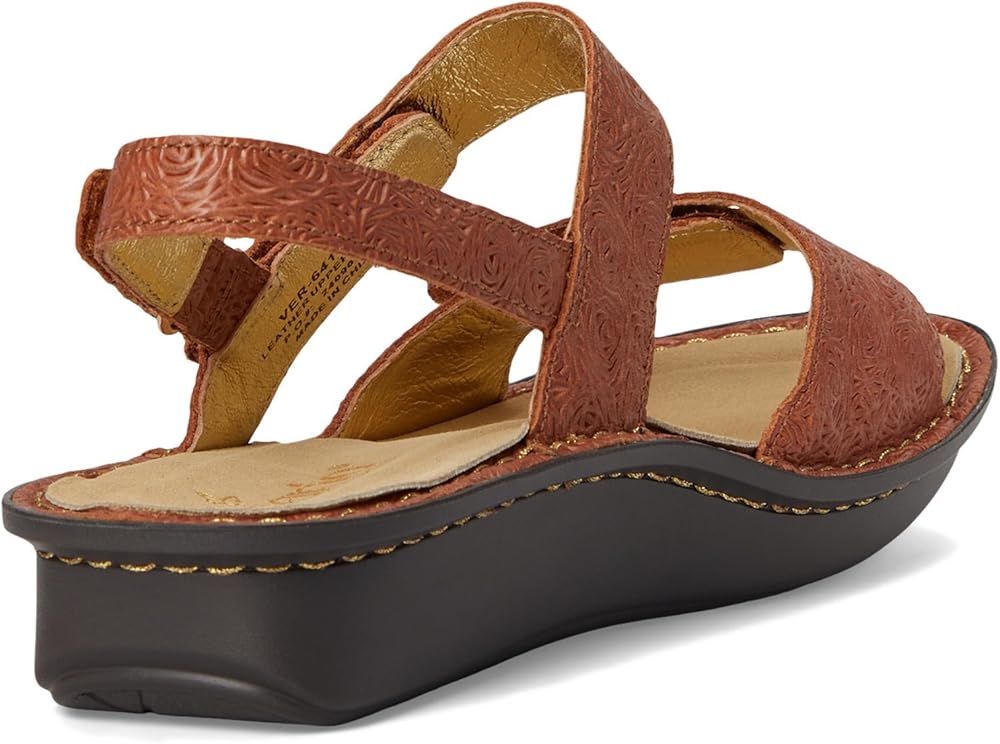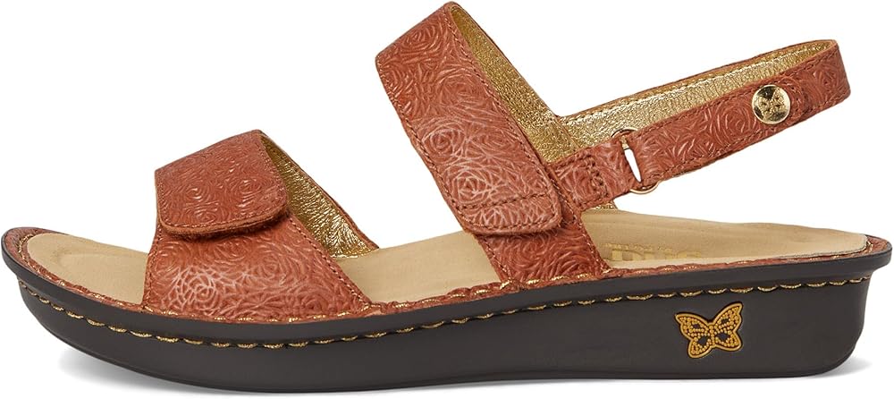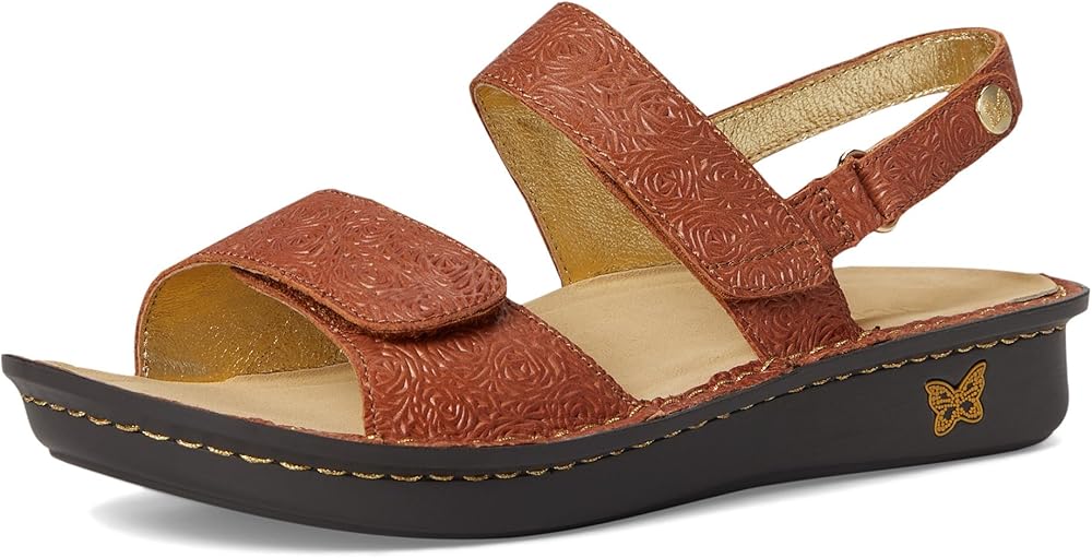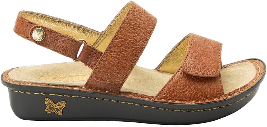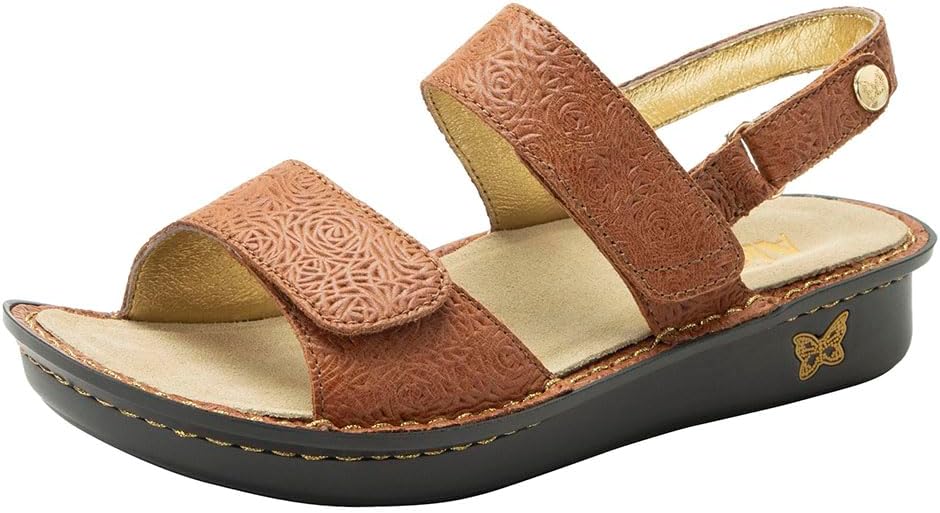 The Verona is on our Mini outsole and is paired with our patented footbed for a truly comfortable fit. The mini-rocker outsole is constructed to mimic a natural rocking motion for improved pressure distribution across the bottom of the foot. The footbed is ergonomically designed to conform the natural contour of the foot, working to relieve legs, hip and back from long standing hours. This sling back sandal offers three adjustable closures to accommodate your feet perfectly.