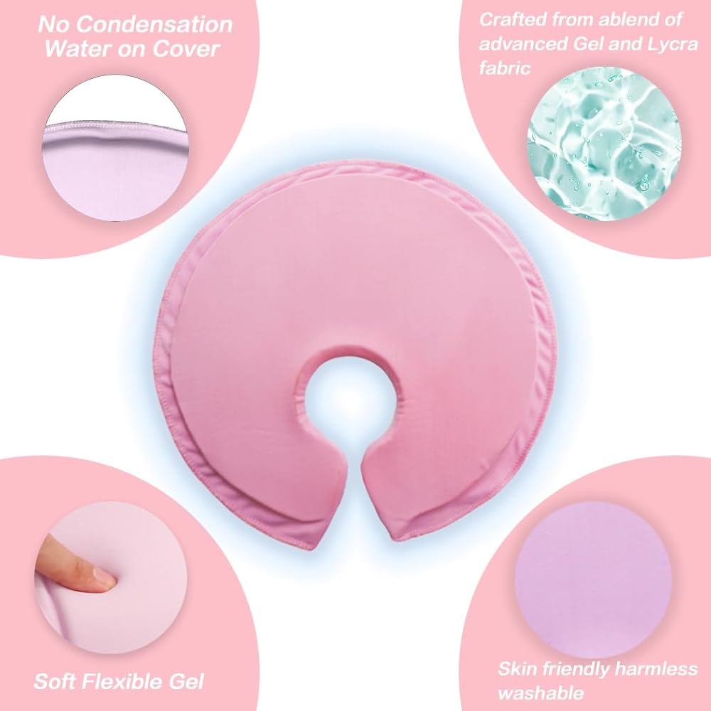 تصميم محيطي: تم تصميم الوسادات على شكل الثدي بشكل مريح لتناسب مريح أثناء جلسات الرضاعة أو الضخ. يتميز بتركيبة هلامية ناعمة متقدمة توفر مرونة وتحديدًا فائقين، مما يتيح ملاءمة دقيقة لمنحنيات الثدي من أجل تبريد متساوٍ وفعال.