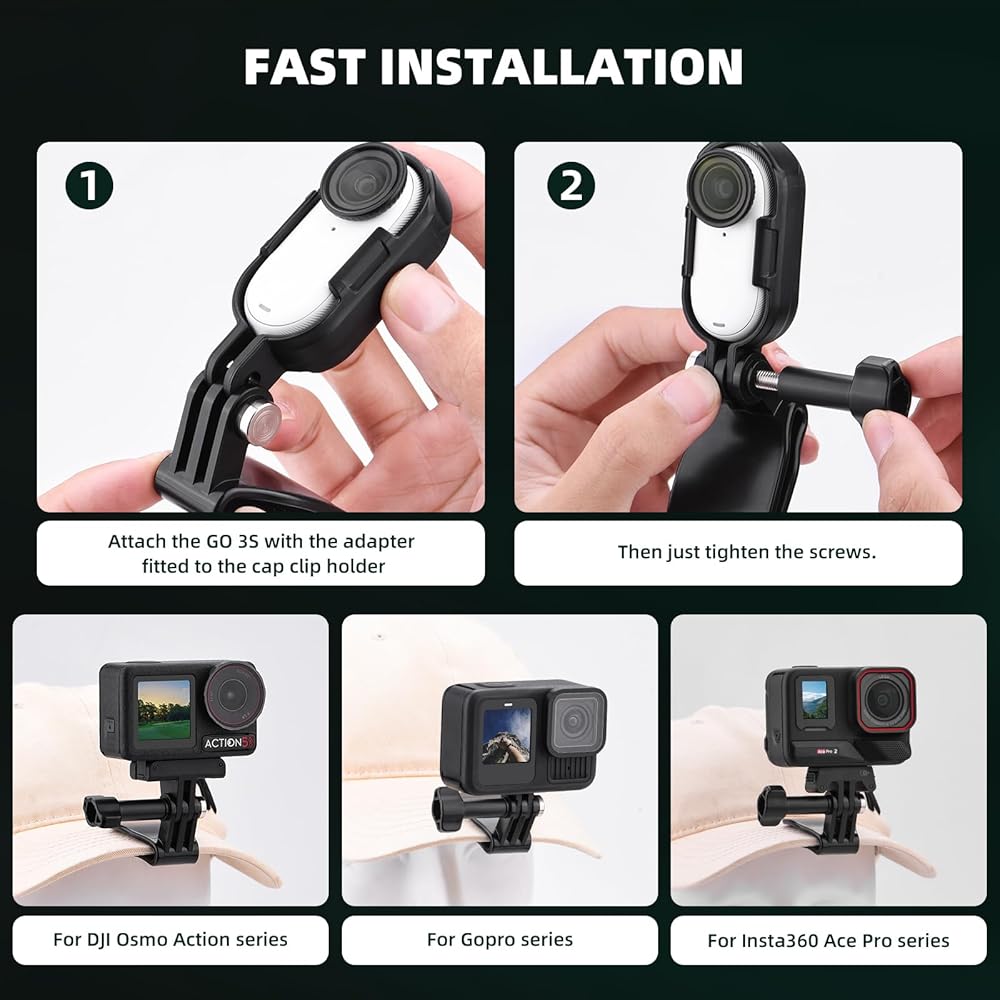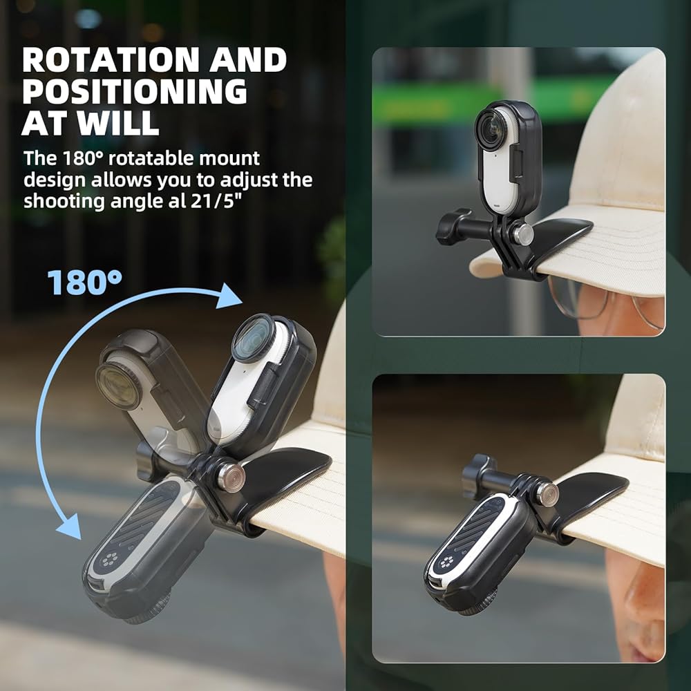 • حزمة شاملة لسهولة الاستخدام - تأتي مع كل ما تحتاجه لإعداد سلس: حامل مشبك القبعة، ومحول الكاميرا، والإطارات الأفقية والرأسية لجهاز Insta360 GO 3S، ومسمار طويل للتركيب الآمن.