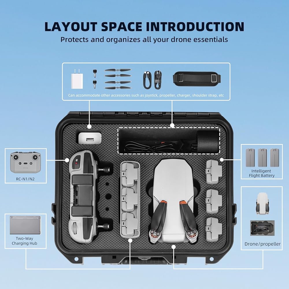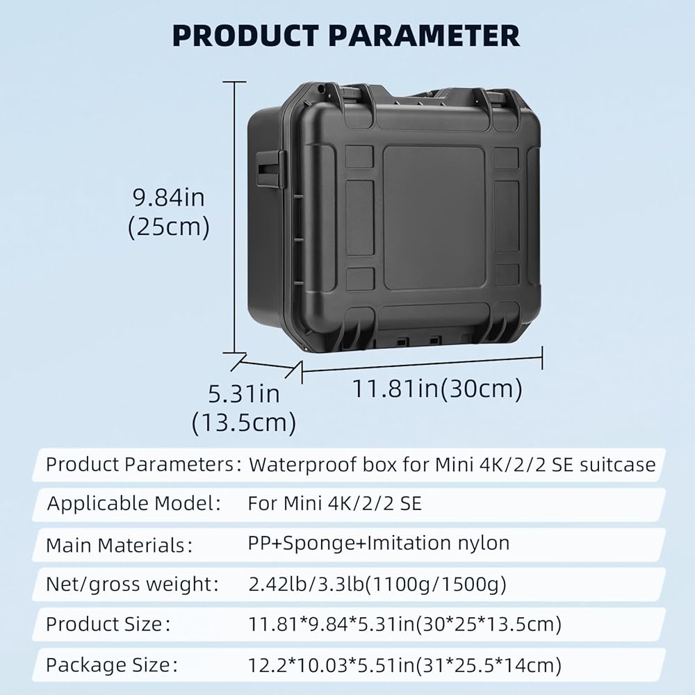 صغير الحجم وواسع - تتميز حافظة mini 2 se بأبعاد خارجية تبلغ 11.8 × 10 × 5.31 بوصة (30 × 25.5 × 13.5 سم). على الرغم من حجمها الصغير، فإنها توفر سعة كبيرة، مما يجعل من السهل حملها وتخزينها في حقيبة الظهر الخاصة بك - مثالية للسفر أو التخزين المنزلي. استمتع براحة البال مع ضمان HeiyRC مدى الحياة، مما يضمن الاستخدام الآمن والموثوق في كل مرة.
