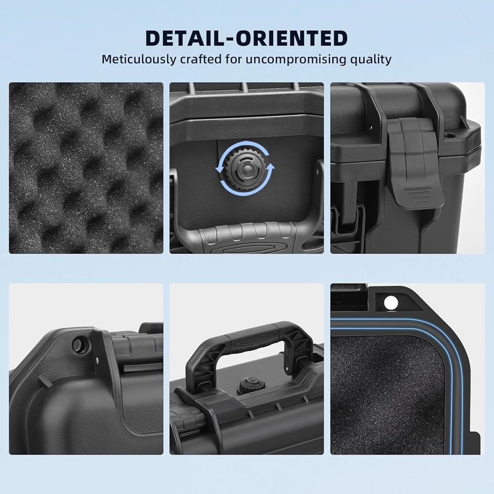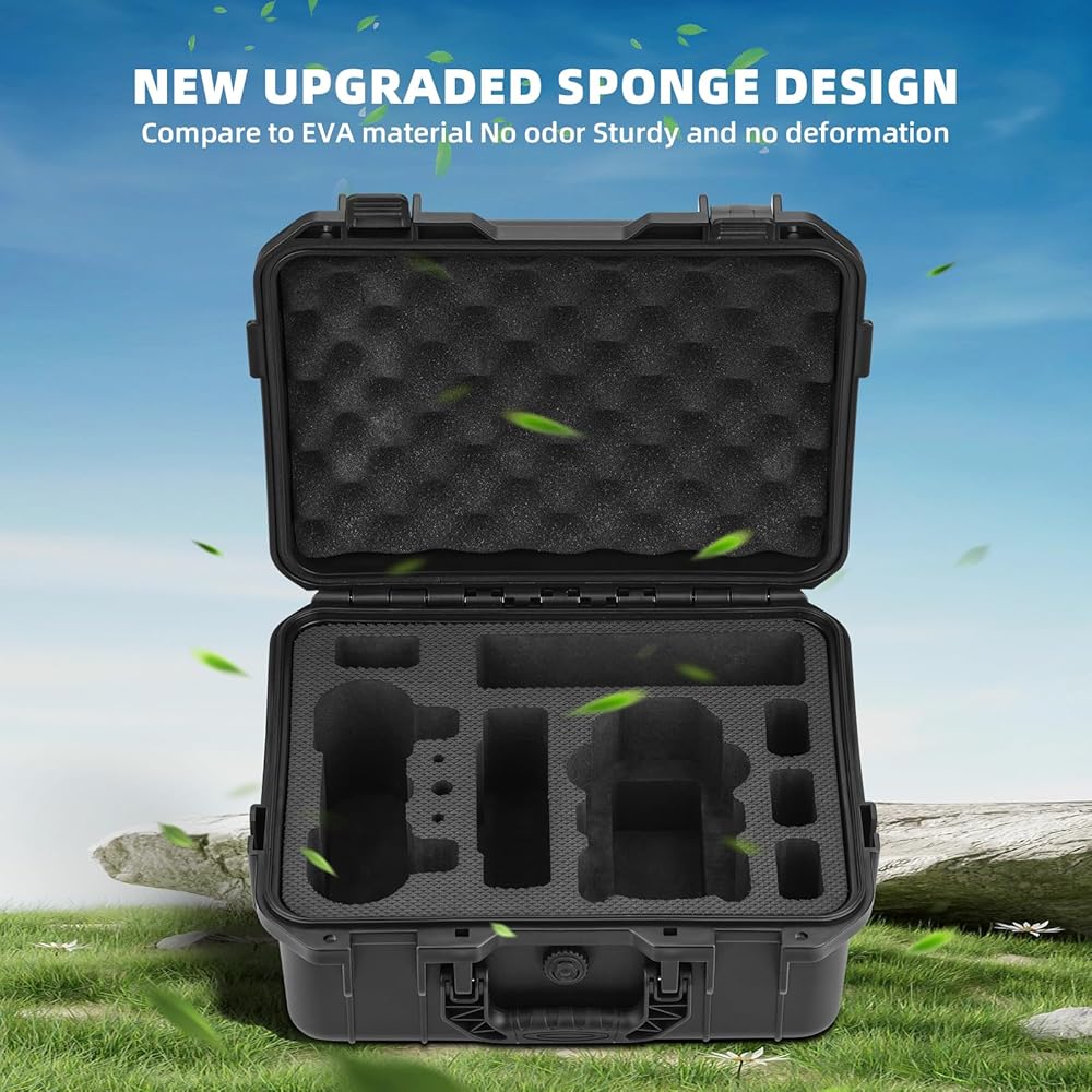 الحماية القصوى - الجراب الصغير 4k الخاص بنا مصنوع من مادة البولي بروبيلين عالية القوة والمقاومة للتآكل. يتميز الجزء الداخلي بأحدث الرغوة الخاصة، والتي تضمن عدم وجود روائح كريهة مقارنة بمواد EVA الشائعة. توفر الأختام المطاطية عند الدرزات مقاومة للصدمات، ومقاومة للماء، وحماية من الخدوش. يوفر هذا الجراب مقاومة ممتازة للماء والغبار والصدمات، مما يحافظ على سلامة طائرتك بدون طيار وملحقاتها من التلف.