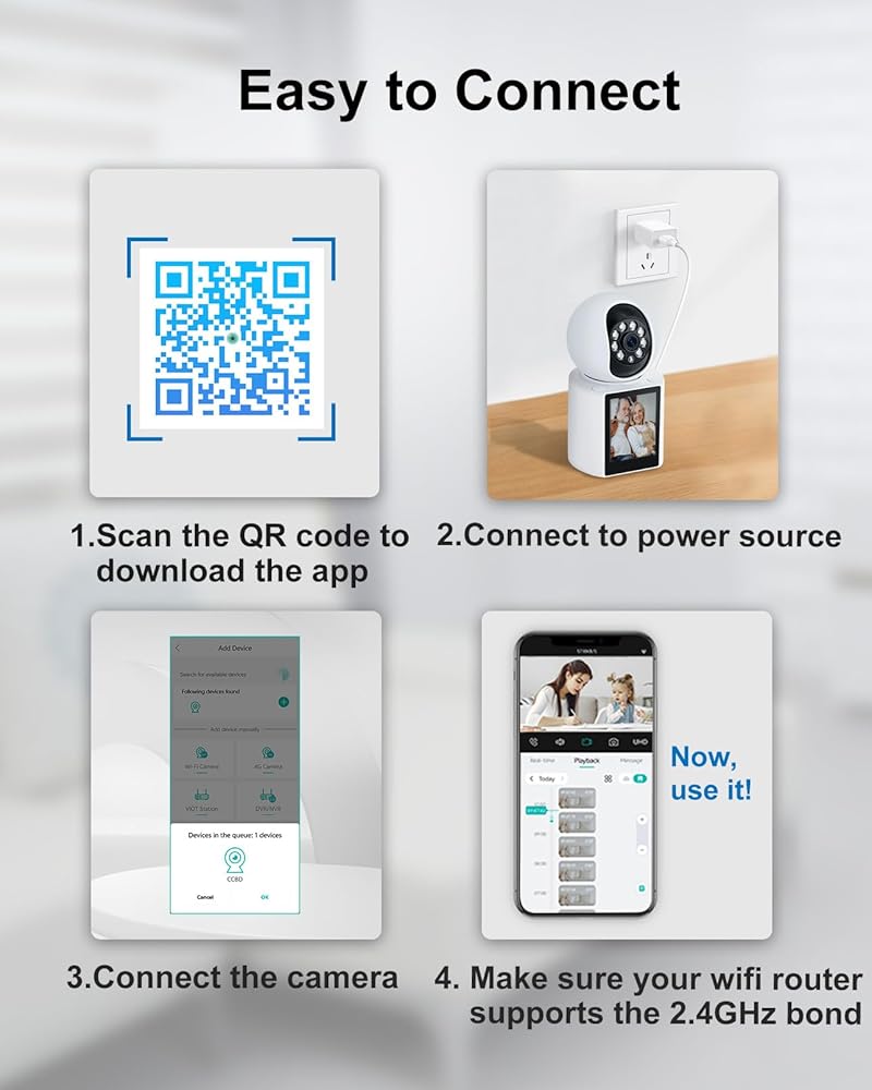 【اتصال صوتي وفيديو تفاعلي】 تتميز كاميرا الفيديو التفاعلية المتطورة لدينا بميكروفونات ومكبرات صوت متميزة لإجراء محادثات واضحة ونقية. إنه مثالي للتواصل مع أفراد العائلة، بما في ذلك كبار السن والأطفال، مع مراقبة حيواناتك الأليفة من بعيد. مع بث الفيديو عالي الدقة في الوقت الفعلي، يمكنك رؤية وسماع كل ما يحدث في المنزل دون عناء، بغض النظر عن موقعك