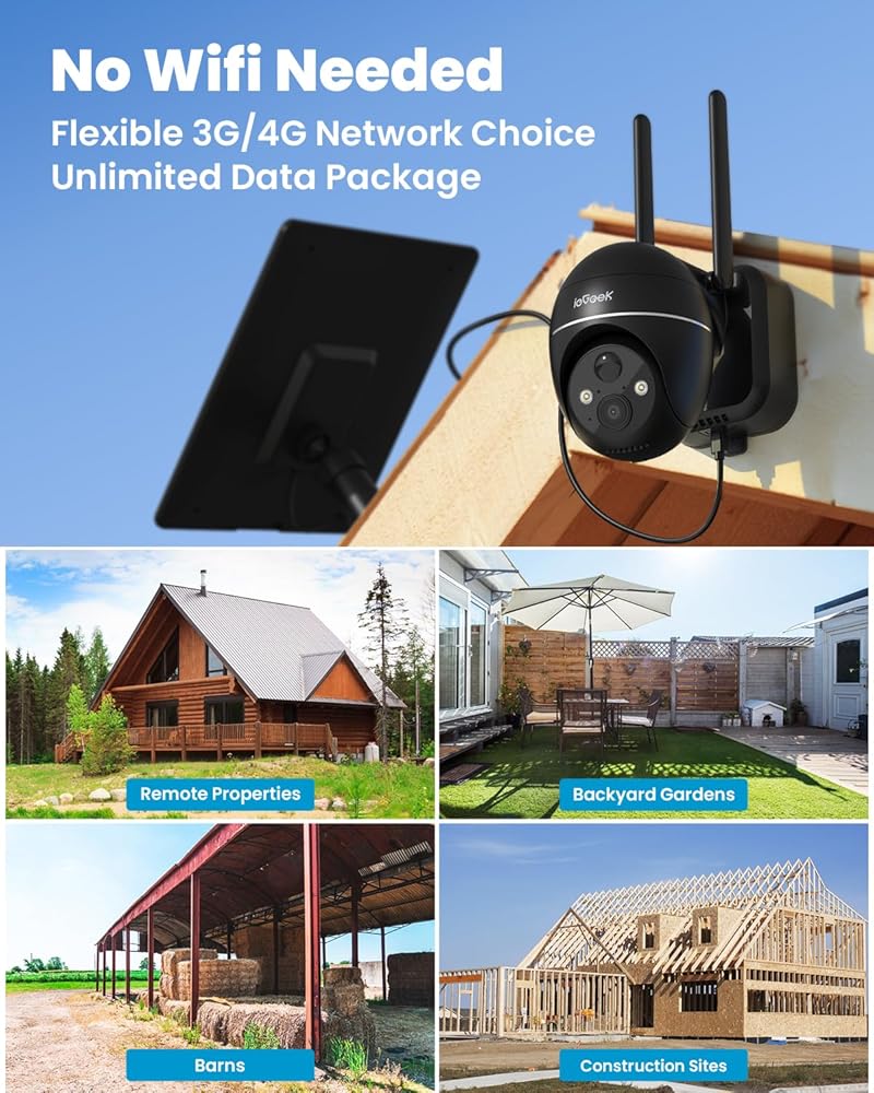 【سهلة التركيب والتوصيل】تدعم كاميرا الأمان lte هذه التثبيت على الحائط، والتي يمكن أن تلبي احتياجات التثبيت الخاصة بك في الفناء الخلفي والحديقة والمخيم وموقع البناء والمستودعات والمزرعة ومشاهد المزرعة. بعد التثبيت، ما عليك سوى مسح رمز الاستجابة السريعة ضوئيًا باستخدام تطبيق ieGeek cam، ومن ثم يتم توصيل الكاميرا اللاسلكية التي لا تحتاج إلى الإنترنت بنجاح! لا تستغرق عملية الاتصال أكثر من 5 دقائق
