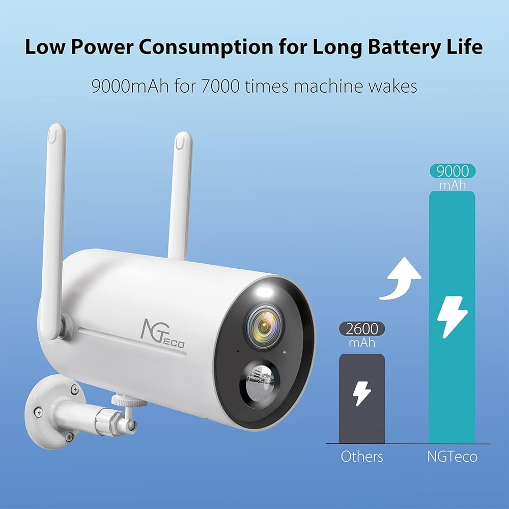 【سعة بطارية كبيرة 9000 مللي أمبير في الساعة ولاسلكية بنسبة 100%】يحقق أمان الكاميرات الخارجية أمانًا خاليًا من الأسلاك بنسبة 100%، والذي يأتي مع بطارية قابلة لإعادة الشحن ذات سعة عالية 9000 مللي أمبير في الساعة ومنخفضة استهلاك الطاقة، والتي يمكن أن تدوم لفترة استعداد تصل إلى 15 شهرًا.
