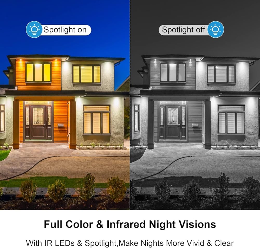【كاميرا رؤية ليلية ملونة عالية الجودة 1080P HD】تستخدم كاميرا wifi الخارجية عدسة بصرية 1080P، والتي يمكن أن توفر صورًا ومقاطع فيديو واضحة عالية الدقة. ويساعد الضوء الأبيض على التقاط صور ومقاطع فيديو ملونة بمدى يتراوح بين 23 و32 قدمًا في الظلام، مما يحمي منزلك بأمان في أي وقت.