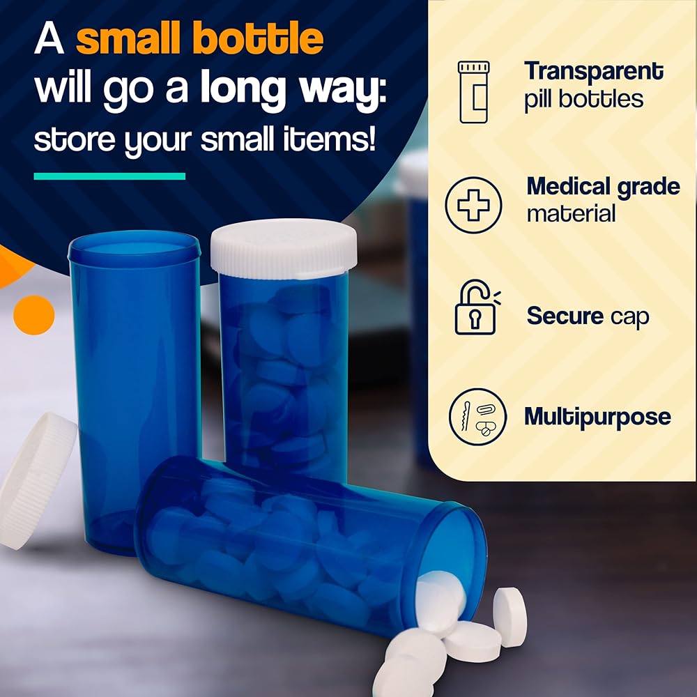 لا يهم إذا كنت منظم حبوب أسبوعي مرتين في اليوم من الأشخاص، منظم حبوب الدواء الشهري 3 مرات في اليوم أو القليل من كل شيء! تتيح لك زجاجات الحبوب البلاستيكية مثل هذه تنظيم حياتك بطريقة واحدة هذا الأسبوع وبطريقة أخرى الأسبوع المقبل. لماذا تضع نفسك في منظم أدوية لا يسمح لك بتغيير الأشياء! اطلب أكبر عدد ممكن من زجاجات حبوب الدواء الفارغة ذات الأغطية التي تحتاجها لإنشاء منظم حبوب الدواء المثالي لمدة 30 يومًا.