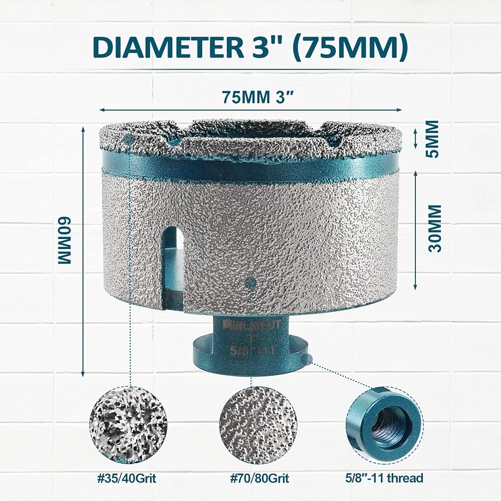 【الميزة: جزيئات ألماس عالية الجودة # 70/80 تغطي سطح العمل، وطحن أكثر دقة وتأثير تشطيب أفضل. مثقاب رقم 35/40، حفر سريع وسلس، لا توجد حافة مكسورة، فقدان أقل للمواد، تأثير حفر جيد. يتم تنفيذ الحفر والطحن في نفس الوقت لتحسين كفاءة العمل.