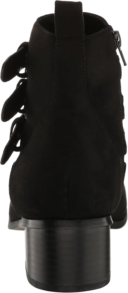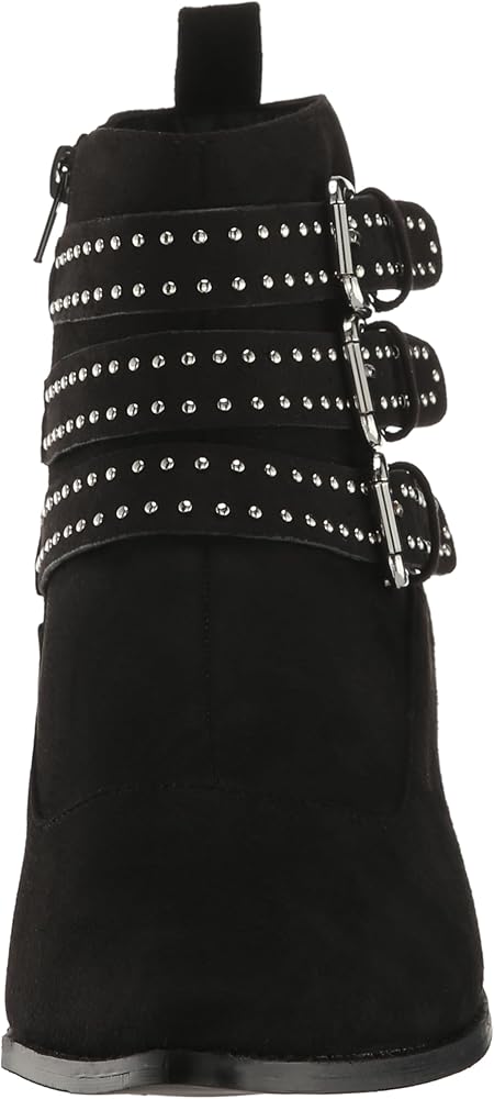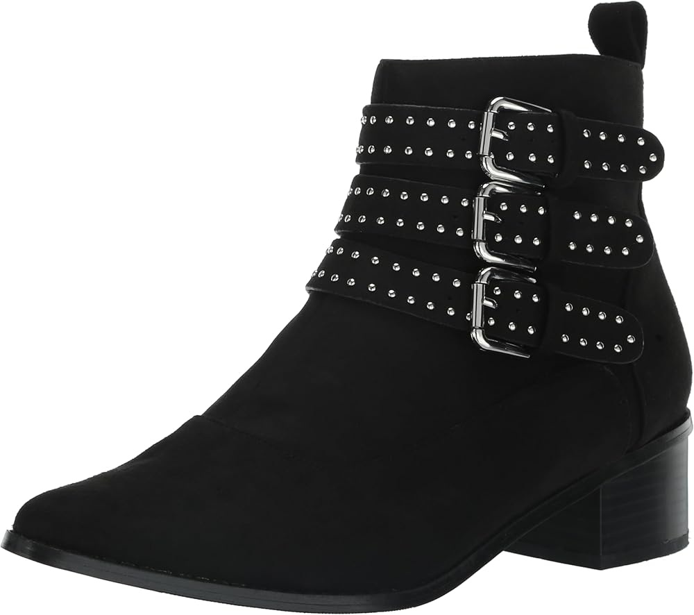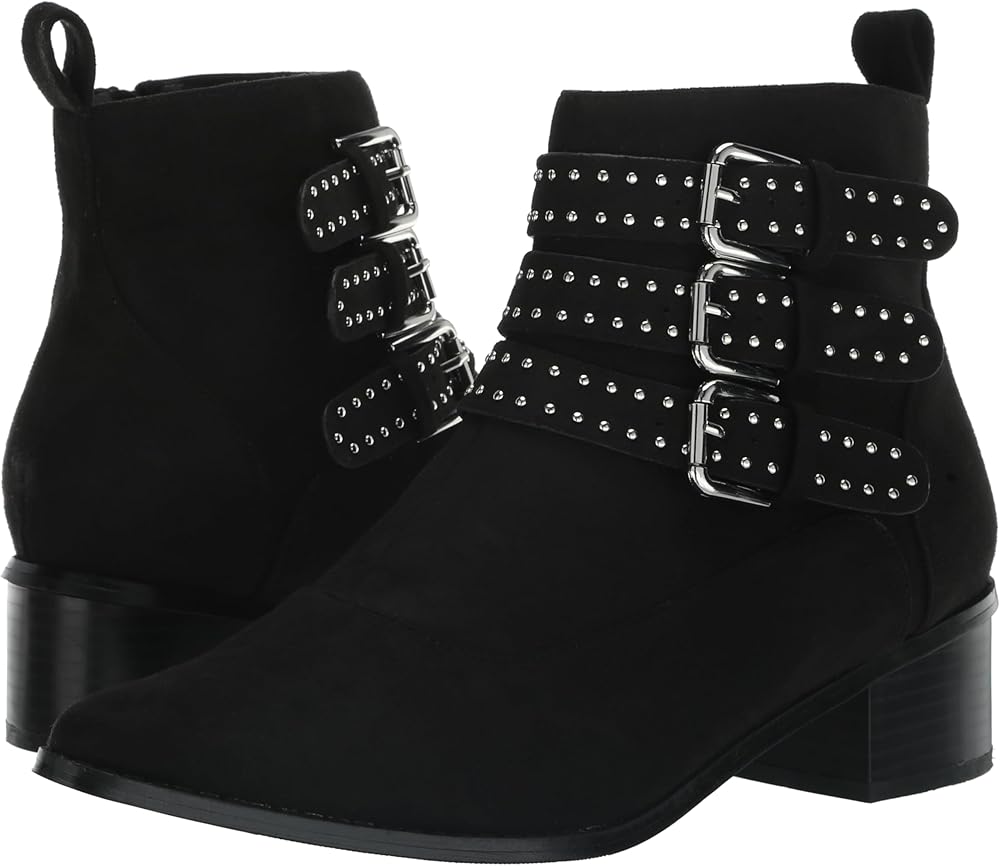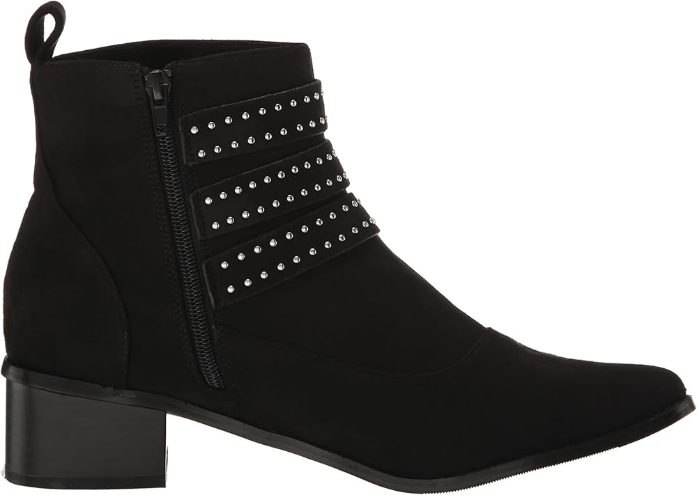 Step out in style with the Bexley Ankle Boot, a fashion-forward staple that effortlessly marries chic design with everyday comfort. Whether you're navigating the bustling city streets or heading to a relaxed brunch, this boot is your go-to choice for any occasion. Its sleek black hue allows for endless versatility, making it the perfect addition to elevate your wardrobe. Crafted for those who won't compromise on comfort, the Bexley Ankle Boot features a wide fit and cushioned sole that wraps your feet in luxury from dawn till dusk. The pointed closed toe and block stacked heel add a touch of elegance, ensuring you stride with confidence. And with a side zip closure, slipping into style has never been easier. The faux suede fabrication imbues a sense of sophisticated texture, while the triple suede ankle strap adorned with silver studs and buckle detailing turns heads with every step. This boot isn't just an accessory, it's a statement piece that says you're ready to take on the world in both comfort and flair. Join the ranks of trendsetters who know that stylish footwear can also be your most comfortable ally. The Bexley Ankle Boot promises endless wearability and an undeniable edge to your ensemble. Don't just follow the trends, set them.
