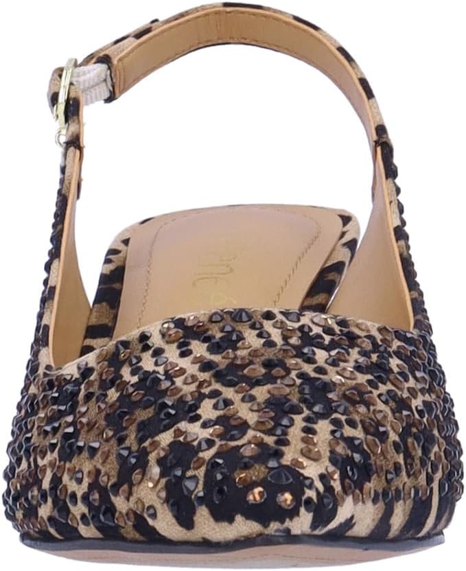 Make it a night to remember with the J. Renee Ferryanne, a sparkling slingback atop a faceted, high-shine kitten heel. Pointed-toe evening shoe features rhinestone-covered textile upper, adjustable buckle ankle strap, and breathable textile lining. Synthetic insole and sole.