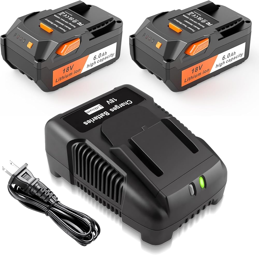 • طاقة خالية من البهتان: أكثر من 500 مرة دورة، بطارية ليثيوم عالية السعة 6.0 أمبير 18 فولت، تدوم طويلاً/ وقت تشغيل أكبر وقوية في العمل
