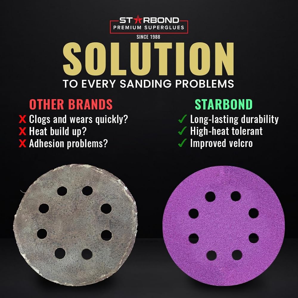 أقراص الصنفرة عالية الأداء Z9 مقاس 5 بوصات من Starbond - عبوة مكونة من 15 قطعة - خطاف وحلقة ذات 8 فتحات (Grit 120) - أقراص تشطيب ورق الصنفرة - مثالية للأعمال الخشبية والسيارات