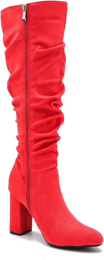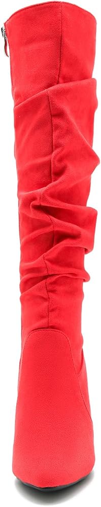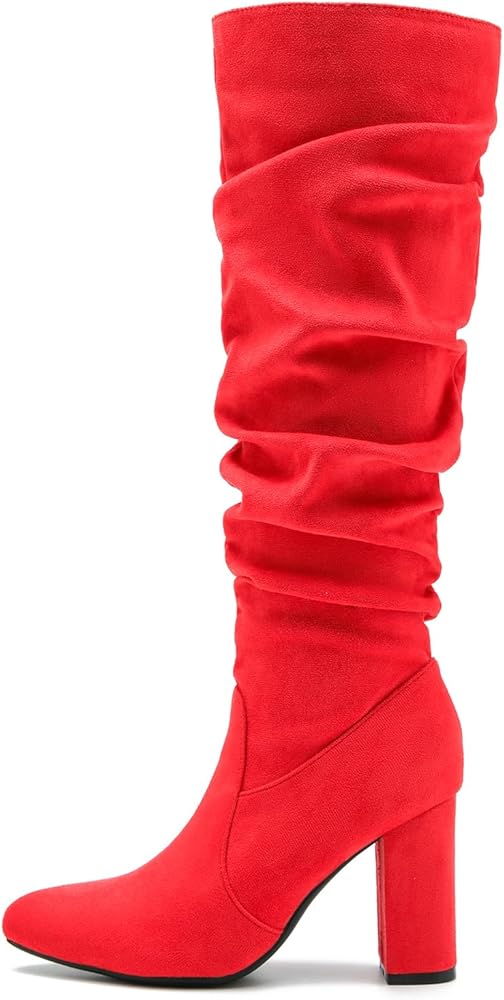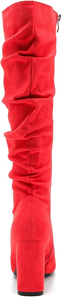 【ميزات تصميم الأحذية النسائية العالية】إغلاق بسحاب جانبي وخيط ربط قابل للتعديل في الأعلى يجعلها سهلة الارتداء وآمنة للملاءمة، دون أن تسقط على الساق، ومقدمة مدببة مثيرة، وأحذية طويلة بكعب عالٍ مكتنز، مما يوفر قدمًا أكيدة مع الحفاظ على أحذية أنيقة لإطالة الساق، هذه الأحذية الأنيقة التي تصل إلى فوق الركبة ستمنح ساقيك مظهرًا مطولاً بشكل سحري
