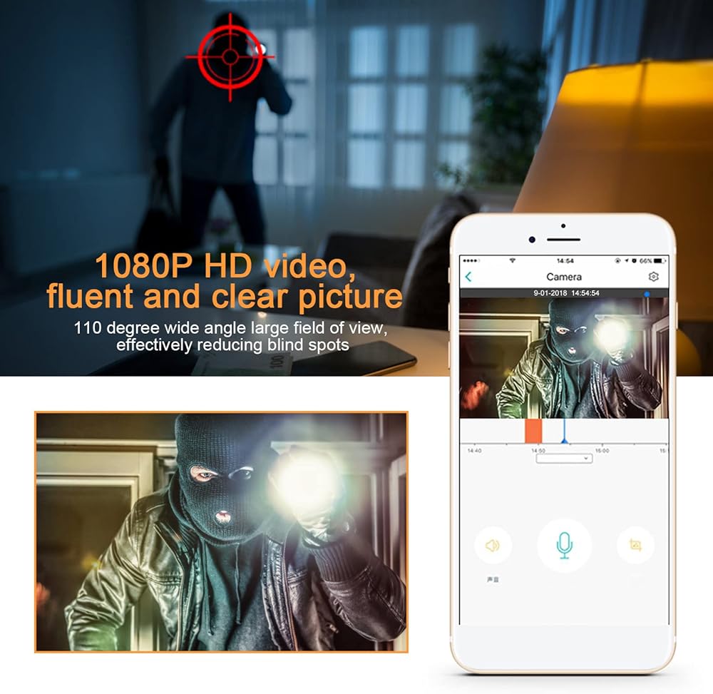 ميزات الترقية: فيديو عالي الدقة 1080 بكسل، صورة بطلاقة وواضحة، وظيفة الرؤية الليلية، كشف الحركة، الاتصال، أقصى دعم لبطاقة الذاكرة الصغيرة 128 جيجا (غير متضمنة).