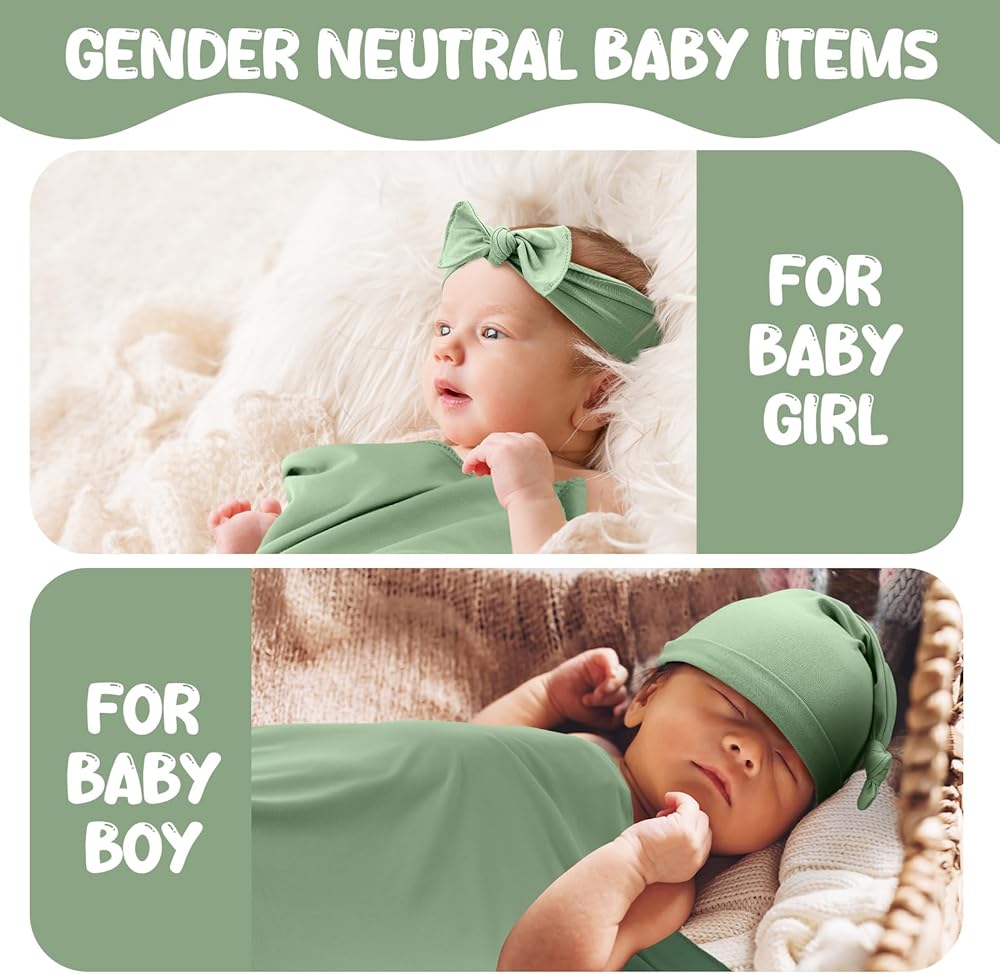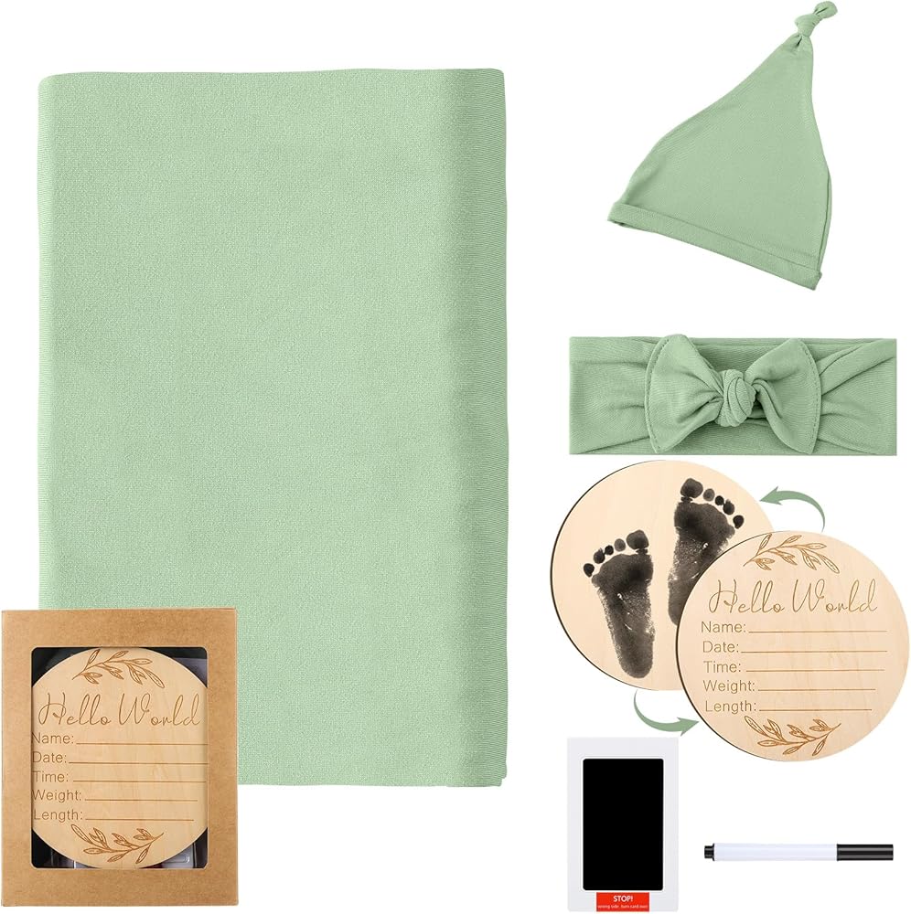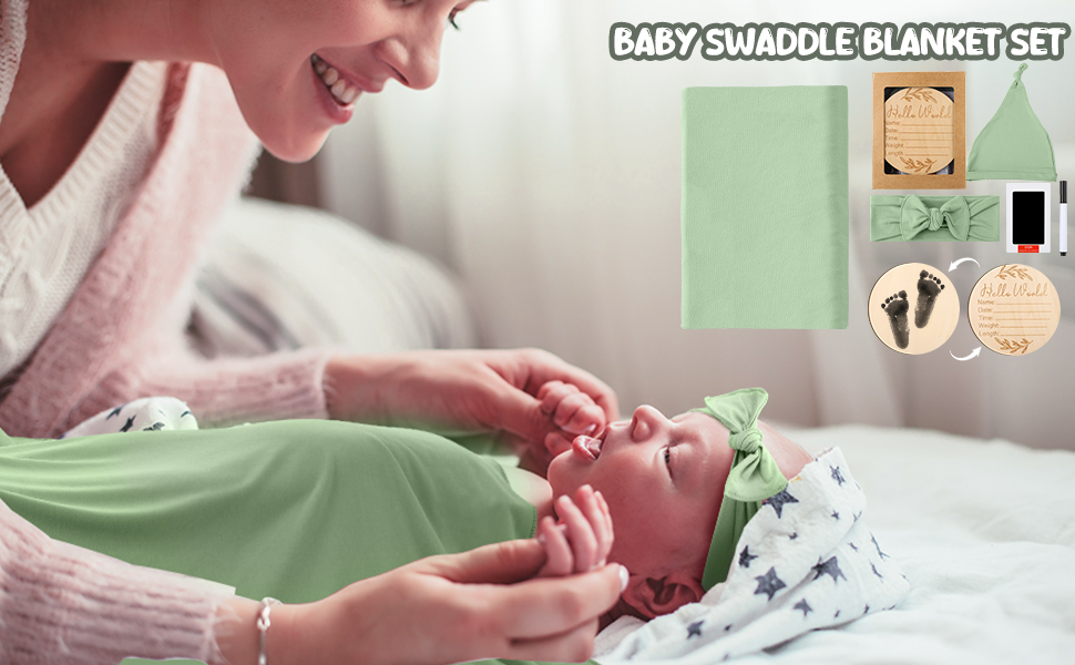 بطانية قماط للأطفال مع قبعة صغيرة متطابقة، وعصابة رأس، وعلامة إعلان الطفل مع وسادة حبر، وقماط حديثي الولادة لتلقي بطانيات ملفوفة للأطفال البنات والأولاد