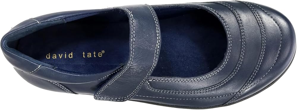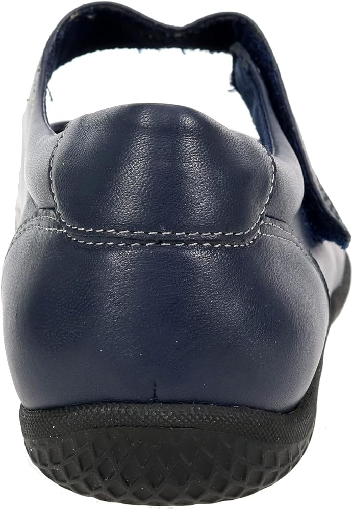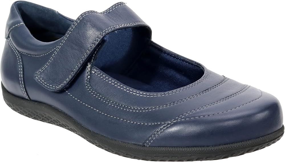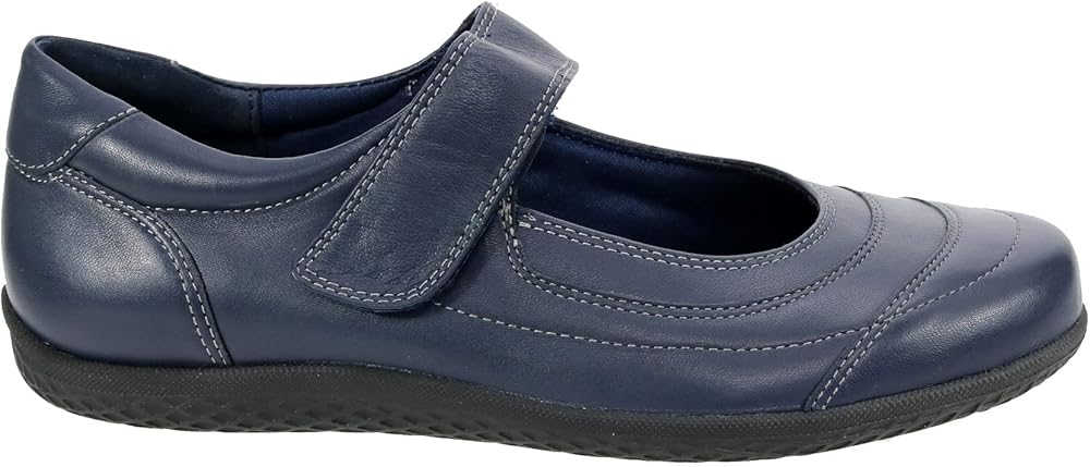*Nappa leather upper *Padded collar *Stylish stitching *Hook-and-loop instep strap *Moisture-absorbing soft lining *Removable footbed *Skid-resistant flex outsole *1/2" heel height