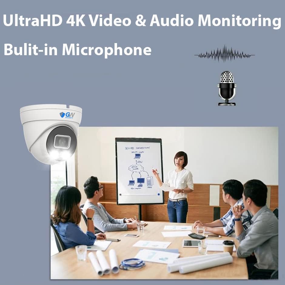 GW Security 4K 8MP 4-in-1 Analog Coaxial Full-Time Color Night Vision Outdoor Indoor Turret Security Camera with Built-in Microphone (GW893FHD)