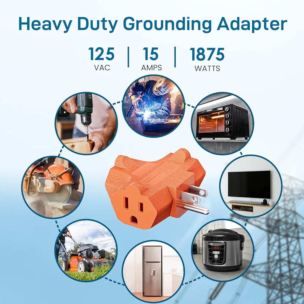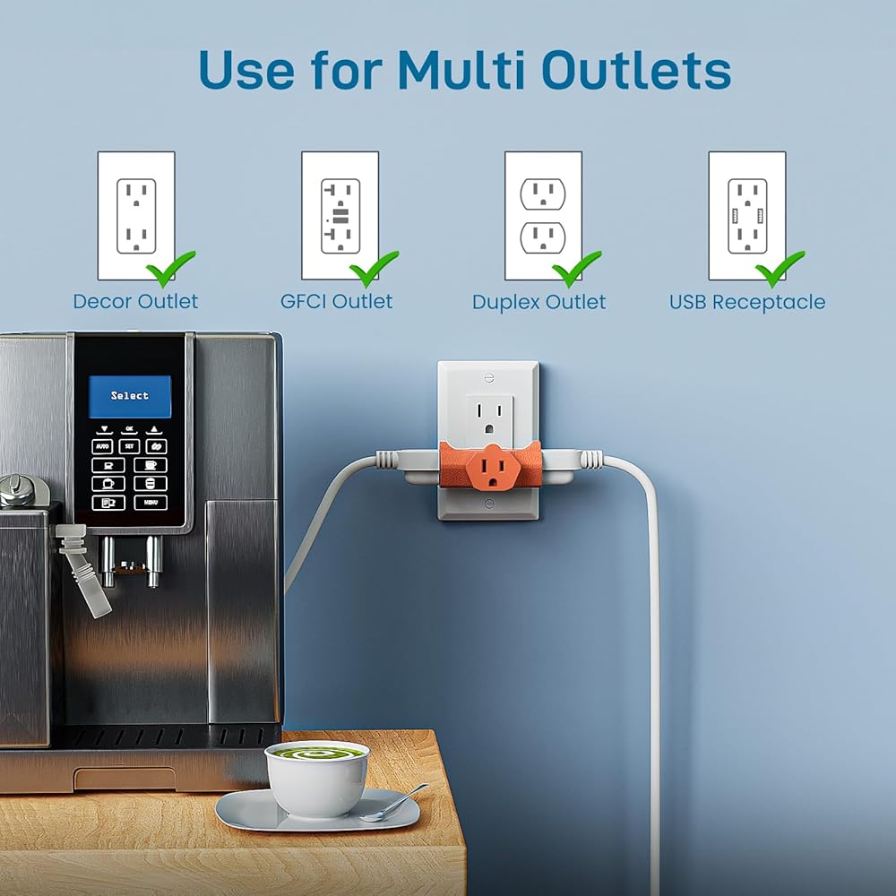 3 منافذ توصيل - يحول الموسع منافذ مؤرضة واحدة إلى ثلاثة، ويقبل كلاً من المقابس المستقطبة والمؤرضة.