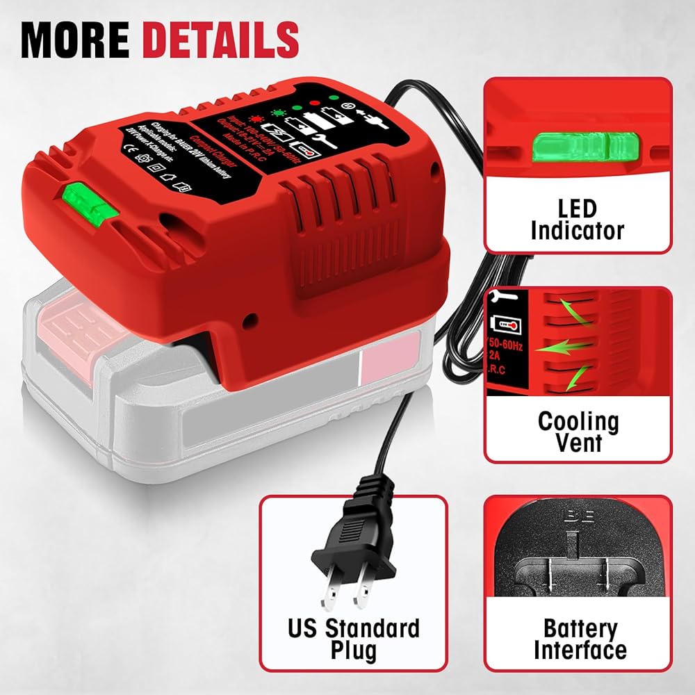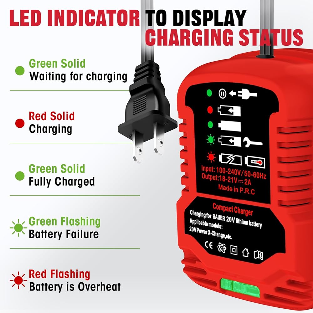 شاحن بديل لباور: شاحن بديل مثالي لشاحن بطارية ليثيوم هايبرماكس 20 فولت من باور. متوافق مع أداة الطاقة باور 20 فولت ماكس، والمثقاب اللاسلكي، ومناشير السلسلة، والأضواء، وأدوات المنفاخ وغيرها من بطاريات الأدوات الخارجية.