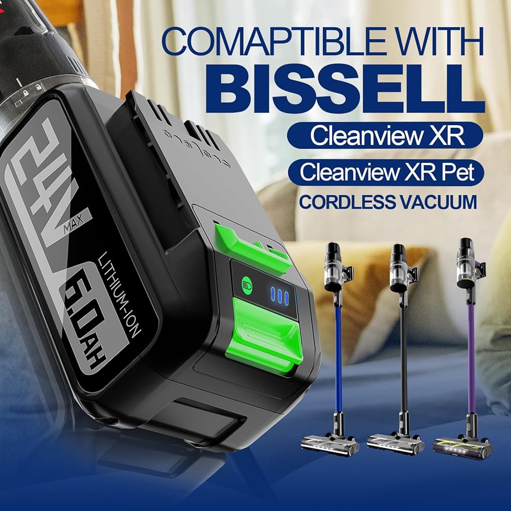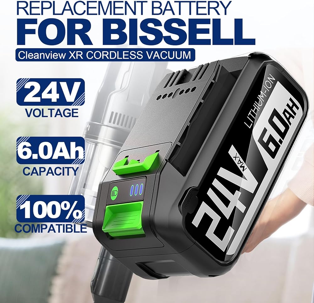 بطارية بديلة 24 فولت 6.0 أمبير في الساعة لبطارية Bissell CleanView XR & XR Pet Stick الكهربائية المتوافقة مع مكنسة Bissell CleanView XR & XR Pet Stick الكهربائية