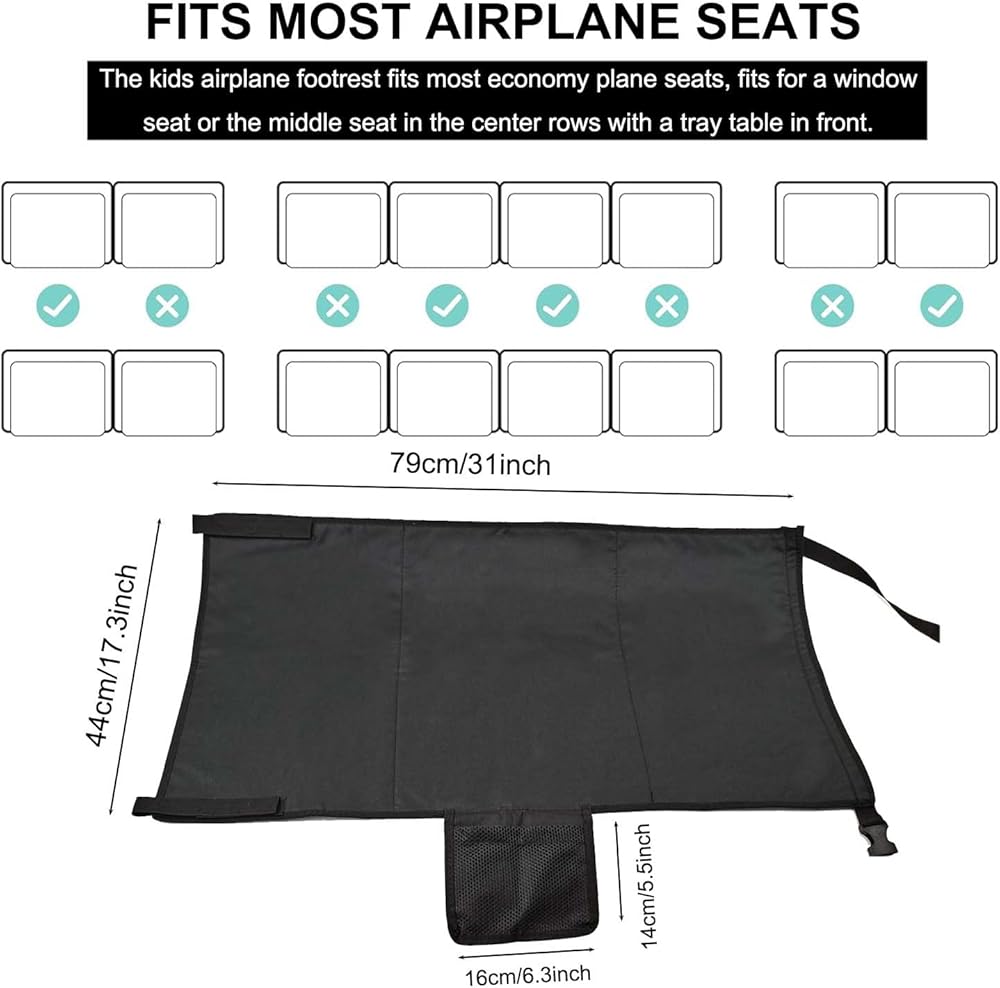 موسع مقعد الطائرة للأطفال، أرجوحة قدم الطائرة، أساسيات السفر المحمولة بالطائرة للأطفال الصغار، مسند الساق للأطفال أثناء سفرهم (أسود)