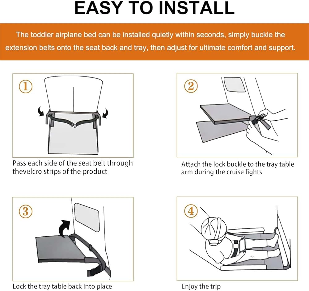 • سهل التركيب: يمكن تركيب موسع مقعد الطائرة بهدوء خلال ثوانٍ، ما عليك سوى ربط أحزمة التمديد على ظهر المقعد والصينية، ثم ضبطه للحصول على أقصى درجات الراحة والدعم.