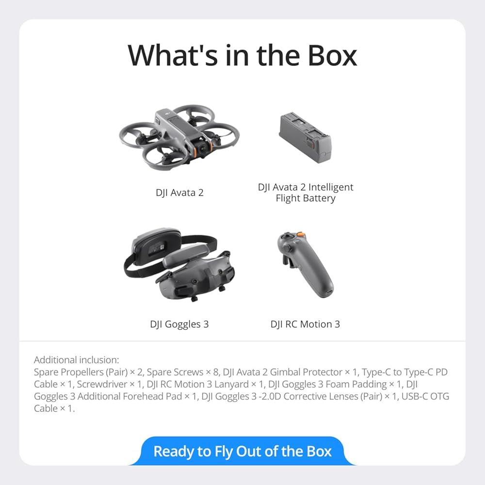 في الصندوق - طائرة بدون طيار DJI Avata 2 | بطارية الطيران الذكية DJI Avata 2 | دي جي آي آر سي موشن 3 | نظارات دي جي آي 3 | 2 × مراوح احتياطية (زوج) | 8 × براغي احتياطية | حامي DJI Avata 2 | كابل PD من النوع C إلى النوع C | مفك البراغي | حبل DJI RC Motion 3 | نظارات DJI 3 حشوة رغوية | نظارات DJI 3 وسادة إضافية للجبهة | نظارات DJI 3 -2.0D العدسات التصحيحية (زوج) | كابل USB-C OTG