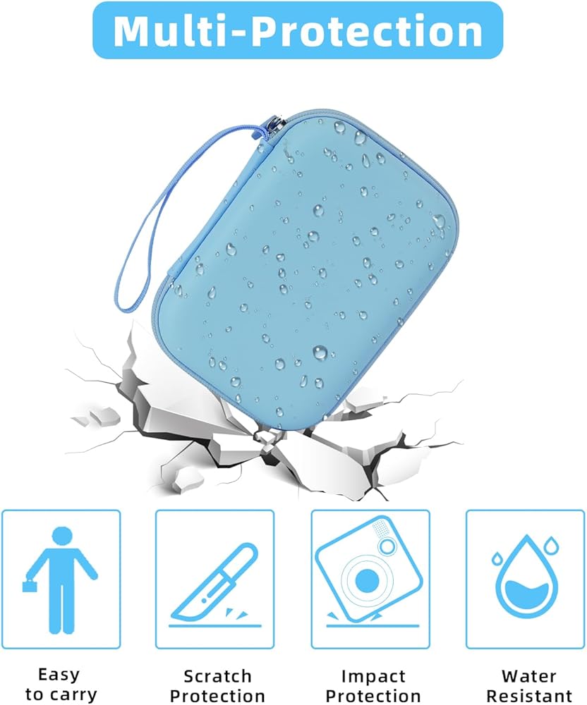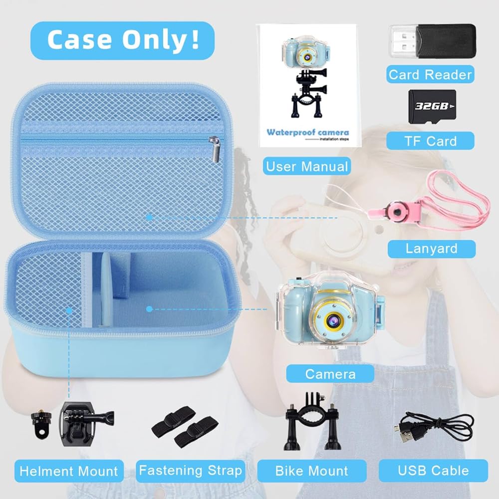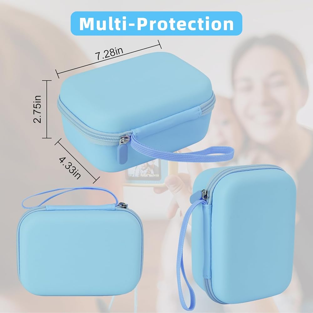 【قوية وواقية】حقيبة حمل كاميرا الأطفال هذه مصنوعة من نسيج عالي الكثافة، مادة EVA صلبة، مقاومة للصدمات، مقاومة للماء، مقاومة للخدش، خالية من الغبار، ومضادة للكهرباء الساكنة. حقيبة السفر الخاصة بالكاميرا الرقمية المقاومة للماء للأطفال مناسبة جدًا لتوفير حماية أثناء السفر لكاميرا Agoigo / Seckton / DEKER / Miiulodi / Yoophane الرقمية المقاومة للماء