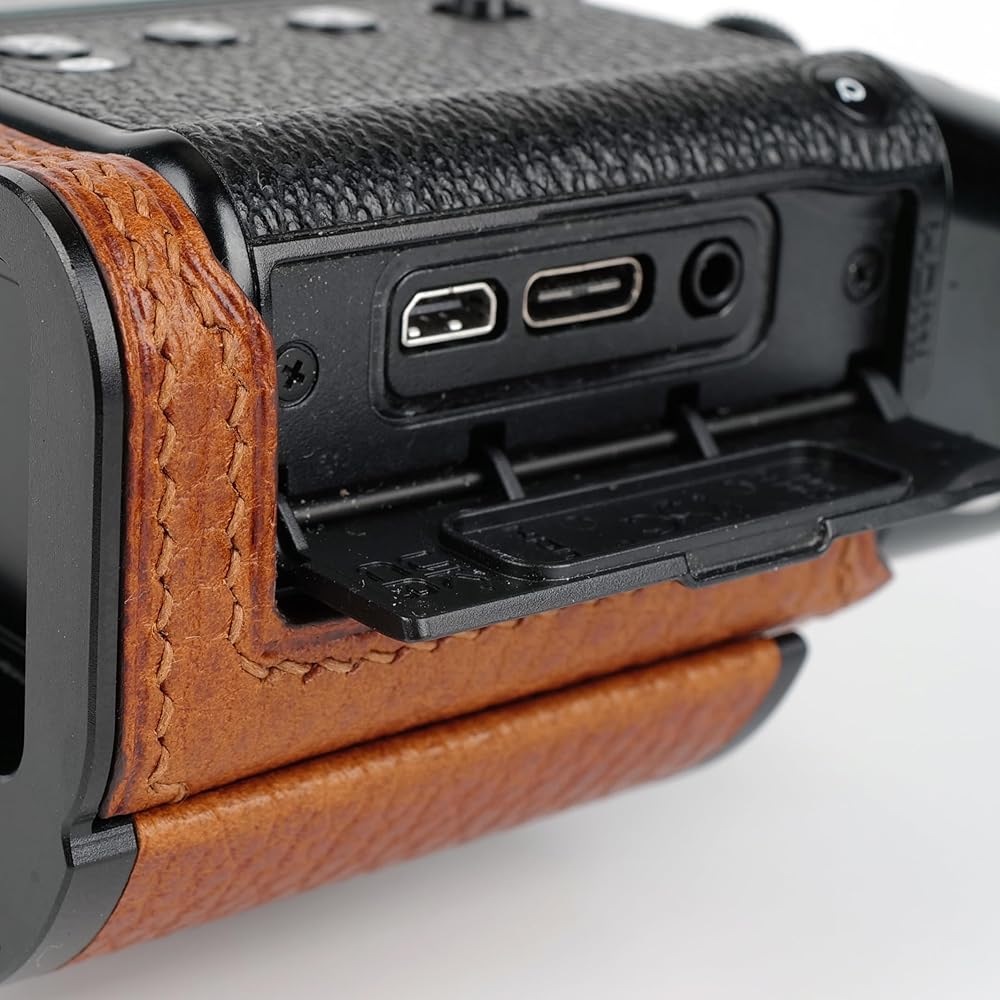 • 【Precise Cutouts】 This is a camera protective cover specifically designed for the Fujifilm X100VI .It does not obstruct the screen's flip function and does not interfere with the removal and installation of the battery and memory card . The side of the camera case can be opened and closed easily to access the memory card.You also can change the battery on the bottom without separation from case.The design of the handle is fitted for the camera radian. You can open the camera screen smoothly.