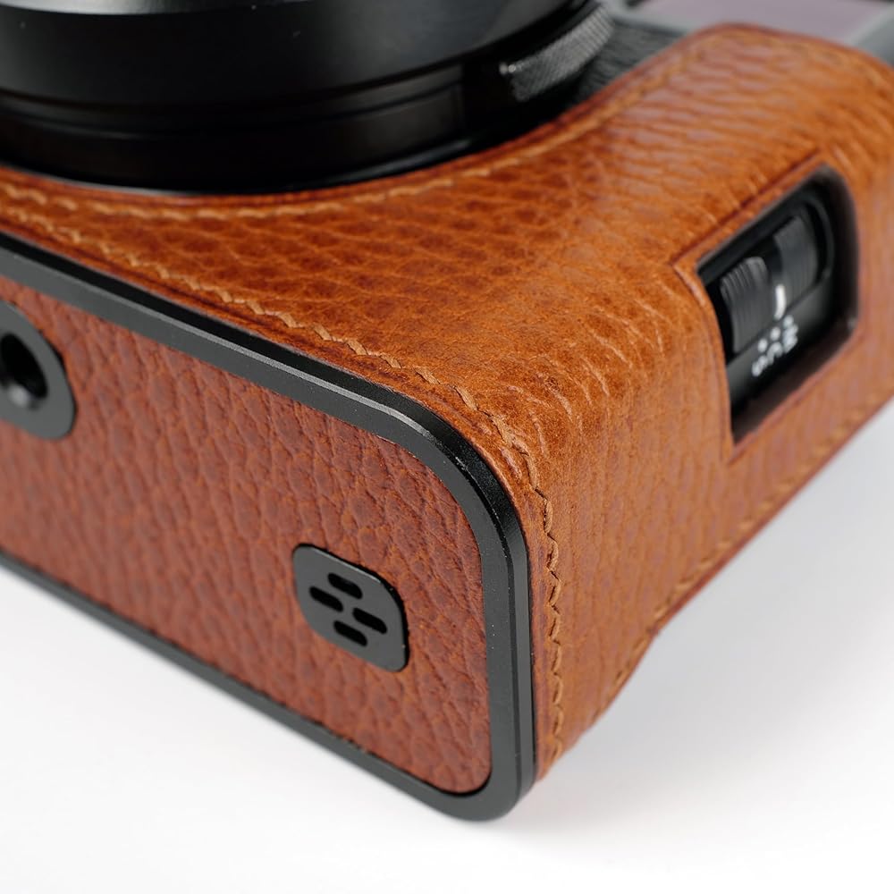 • 【High-Quality Materials】Our camera cases for Fujifilm X100VI are made from high-quality top layer cowhide.Our camera cases are made with hand sewn saddle stitch not machine lock stitch, with every stitch and detail finely carved. The metal base in bottom is made of aviation grade aluminum alloy, which has high oxidation resistance, stability, light weight and strong durability.