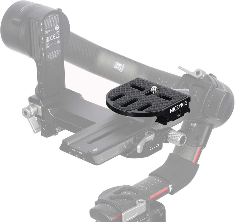 Arca-standard raising height quick release extended plate, dedicated for DJI RS 3/3 Pro/ RS 2/ RSC 2, can replace the gimable original Arca QR plate. Also provides extra security, better balance expecially for larger camera, long lens camera on DJI RS.