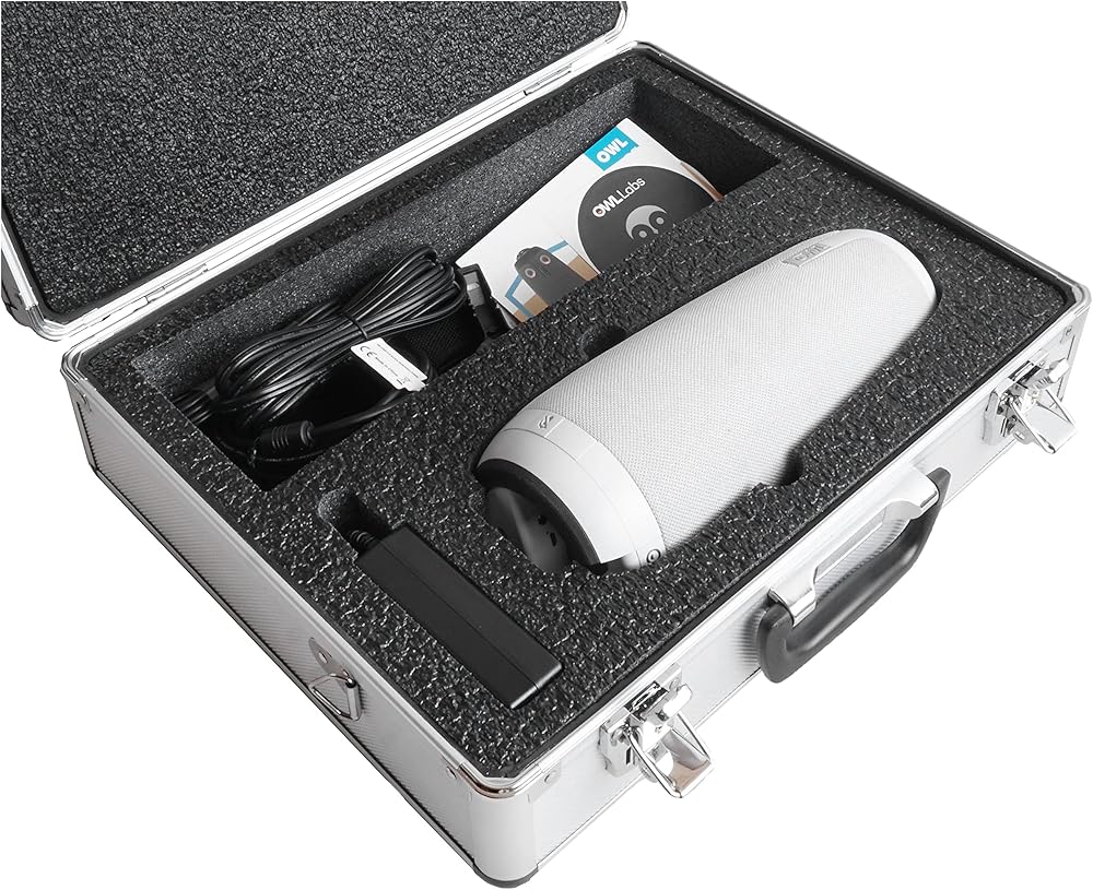 • لم يتم تضمين Meeting Owl أو Meeting Owl Pro. المنتج عبارة عن حافظة صلبة ذات تصميم داخلي مخصص فقط