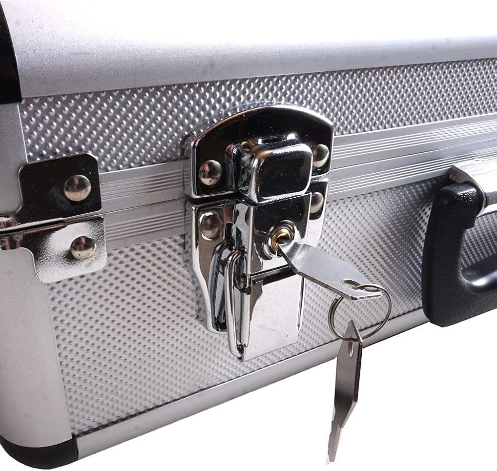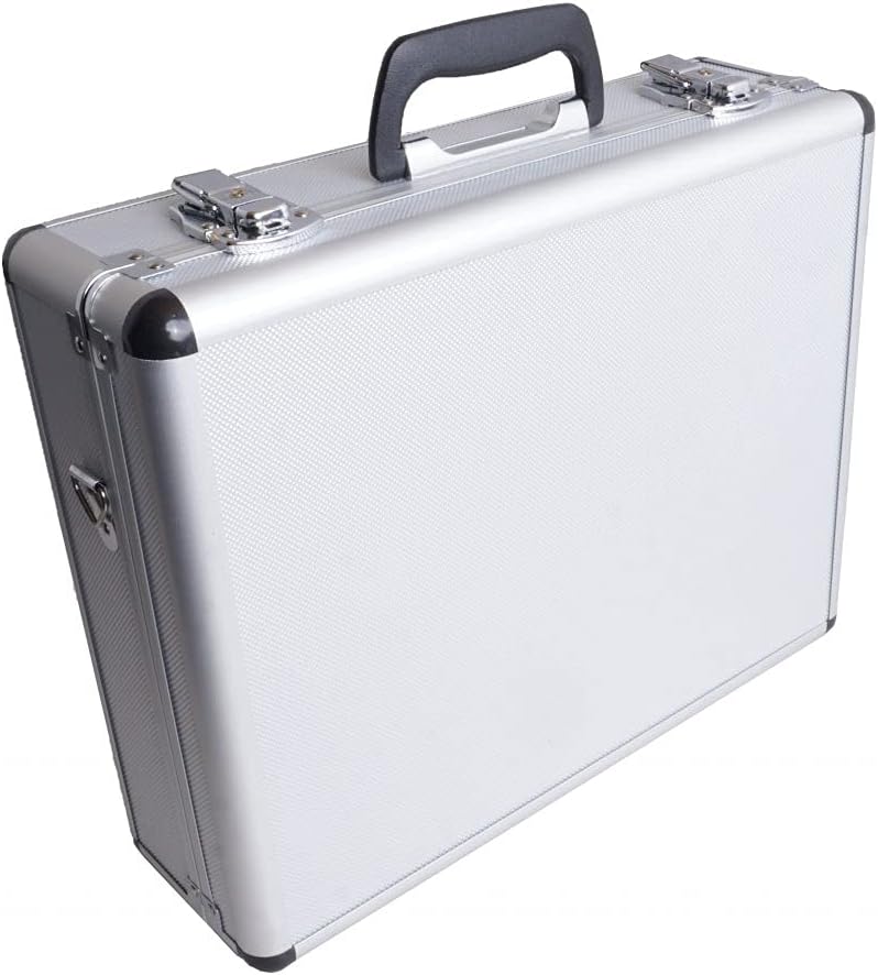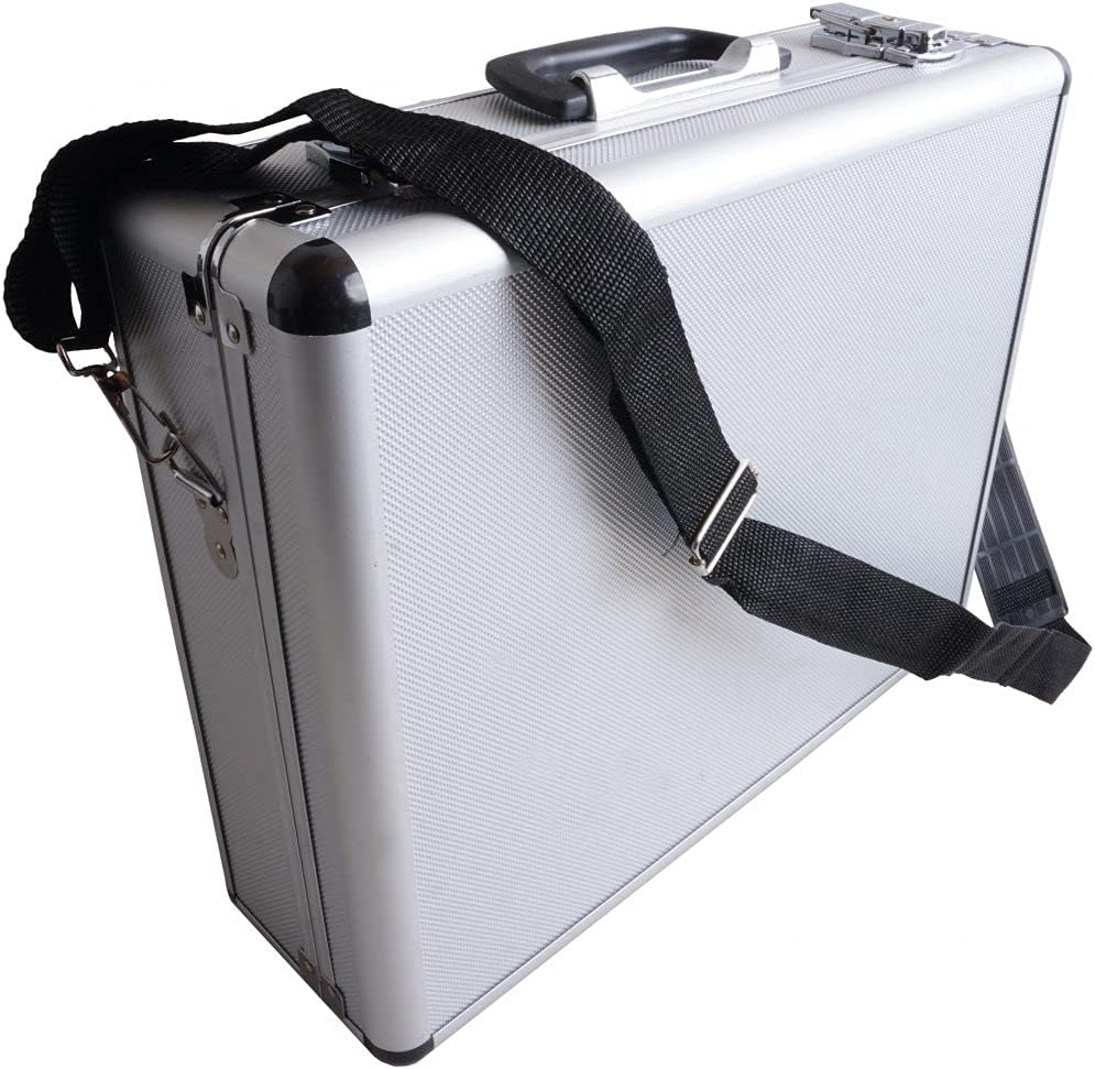 • يتميز الجراب بجزء خارجي أنيق واحترافي من الألومنيوم ويتميز بمزالج قفل للمفاتيح، ومقبض قابل للطي، وحزام كتف، وأقدام مطاطية.