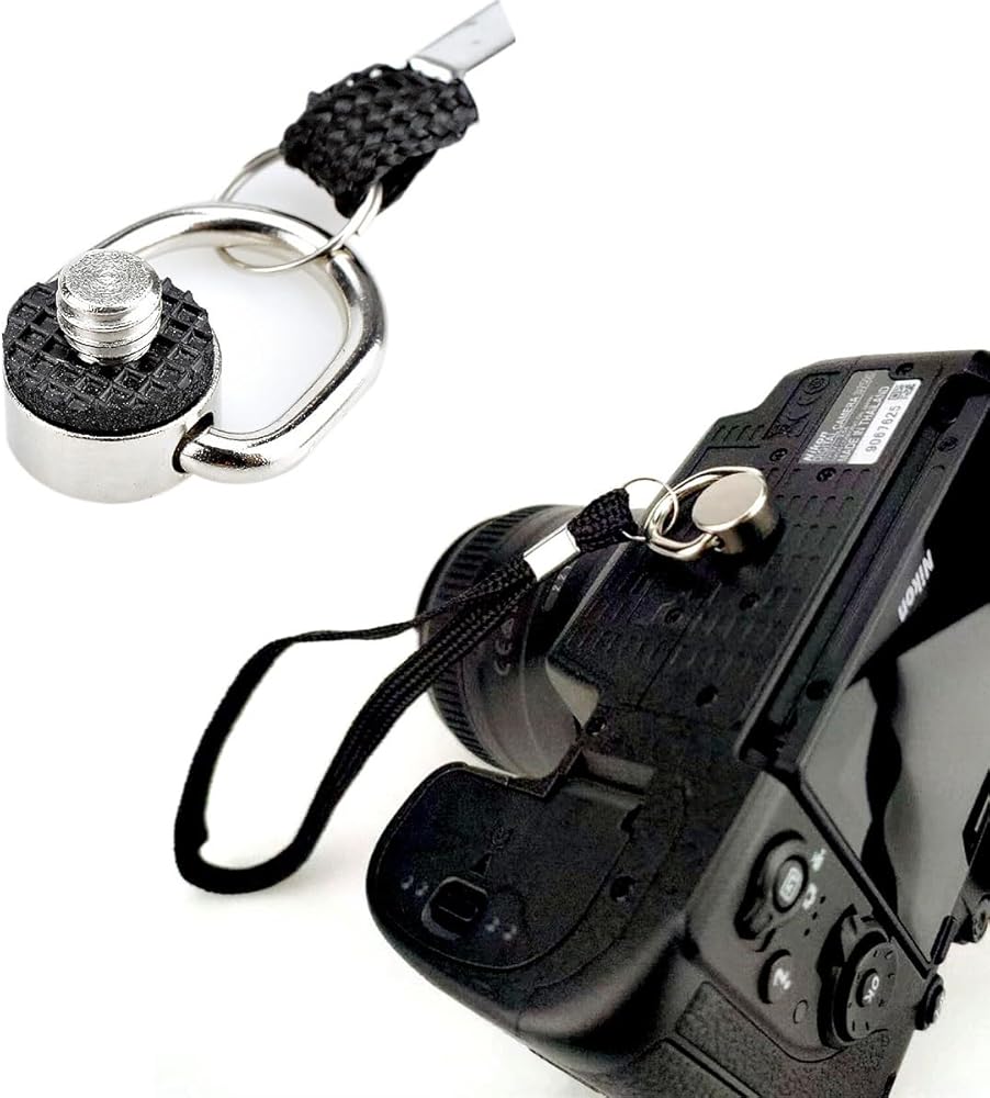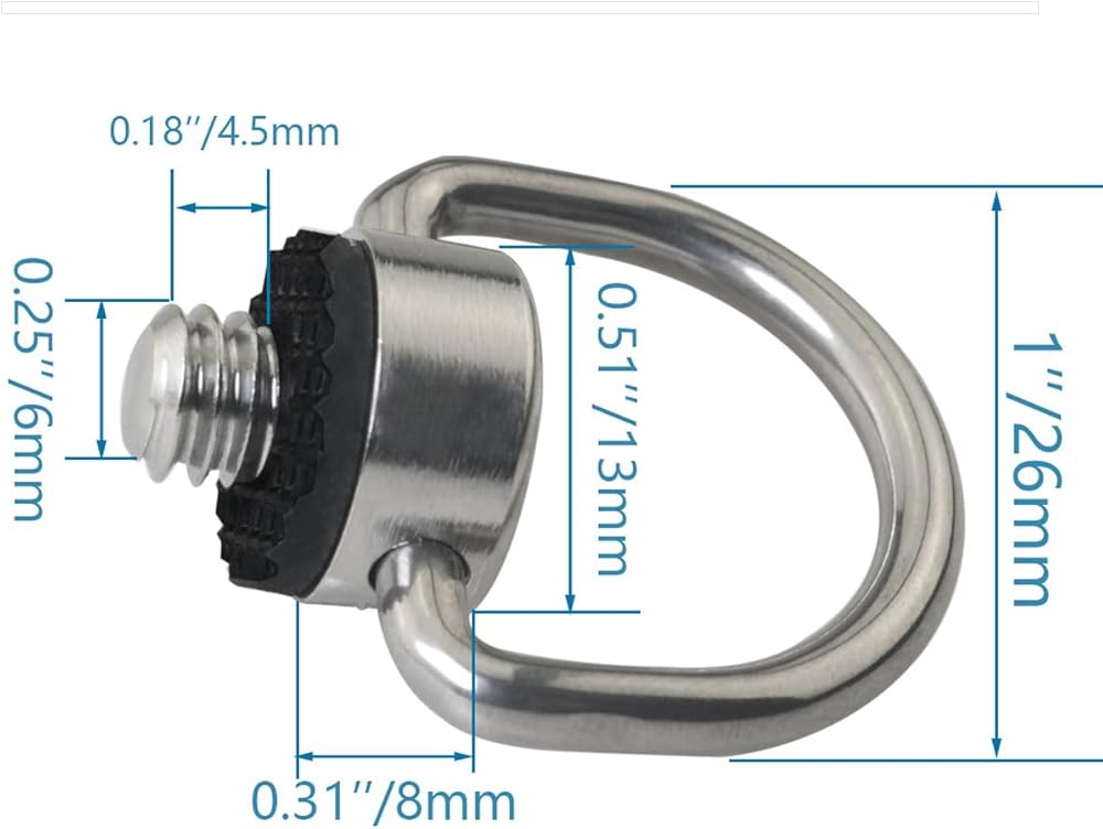 3 قطع من الفولاذ المقاوم للصدأ على شكل حرف D حامل الصراخ برغي تثبيت الكاميرا سريع الفك وحزام المعصم وحلقة حلقة الكاميرا ومشبك على شكل حرف D - يمكن ربط حزام الكاميرا بسهولة
