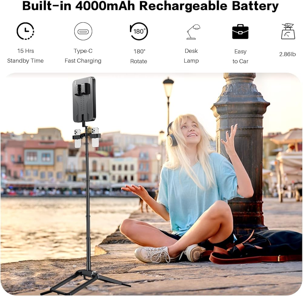 5. Excellent Service and Broad Compatibility: Flexible adjustment of brightness angle, outdoor portable, suitable for video conferencing, photography and video fill light, outdoor live broadcast, desk lamp, camping, zoom calls and even product photography. Built-in 4000mAh battery, lasts for up to 8 hours.