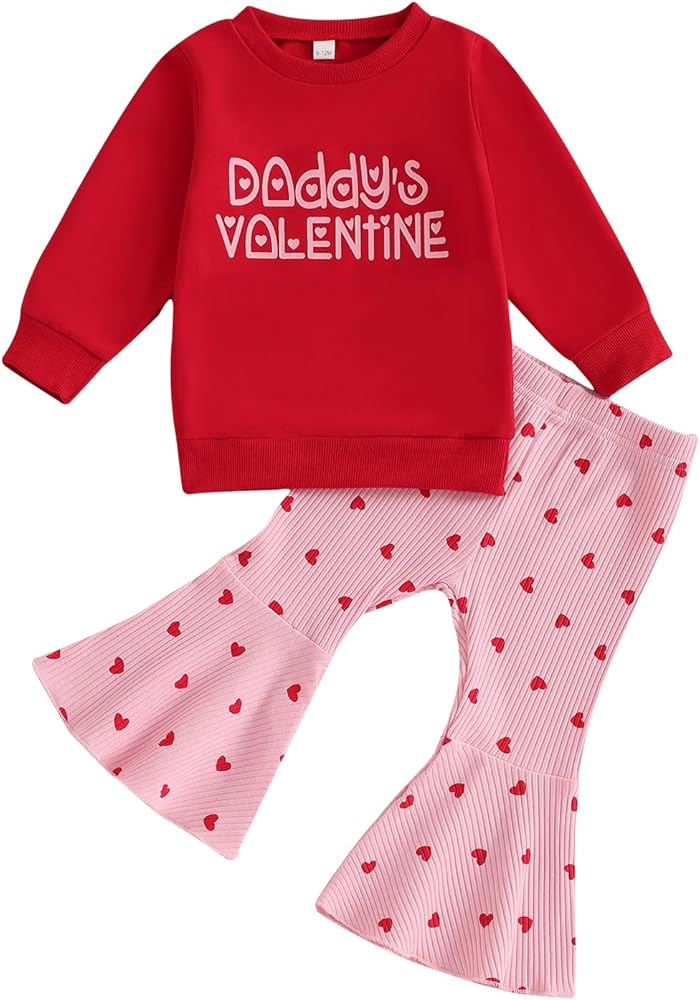 • التعبئة والتغليف: ملابس أطفال لطيفة للعطلات، 1 × سويت شيرت بأكمام طويلة 1 × بنطال جرس، زي على شكل قلب للفتيات الرضيعات