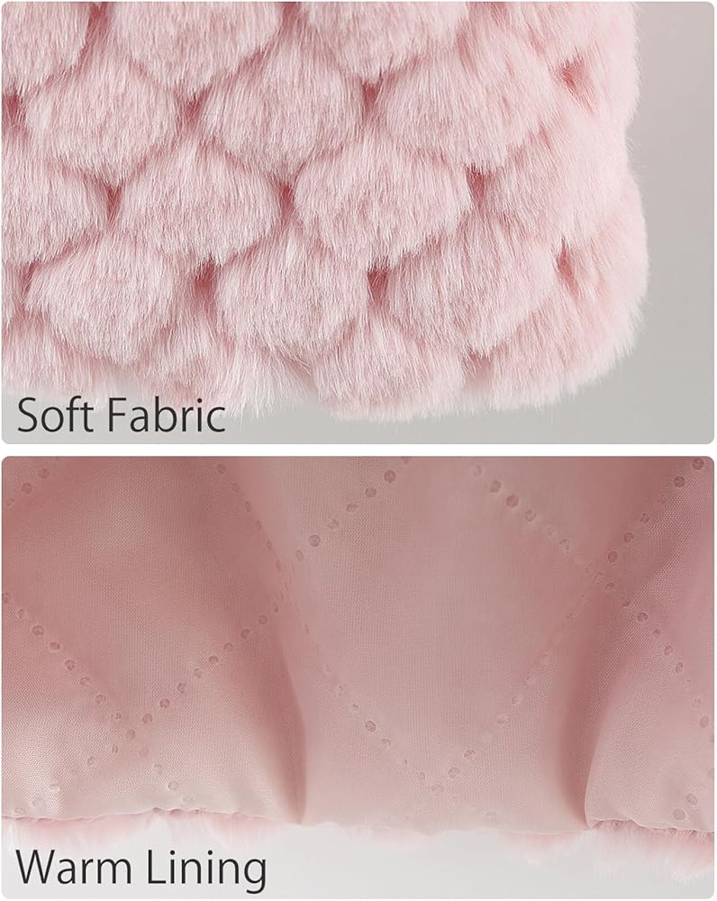 • ⭐🍄⭐【أناقة تشبه الأميرة】: تم تصميم معطف الفرو هذا ليجعل صغيرتك تشعر وكأنها أميرة. طرازها الساحر، مع زر أمامي مزين بعقدة ساحرة، يضيف لمسة من الأناقة الملكية إلى ملابسها سواء اختارت النسخة ذات الأكمام الطويلة أو بدون أكمام، فإن الفرو الصناعي السميك المريح يعزز مظهرها مع الحفاظ على دفئها.