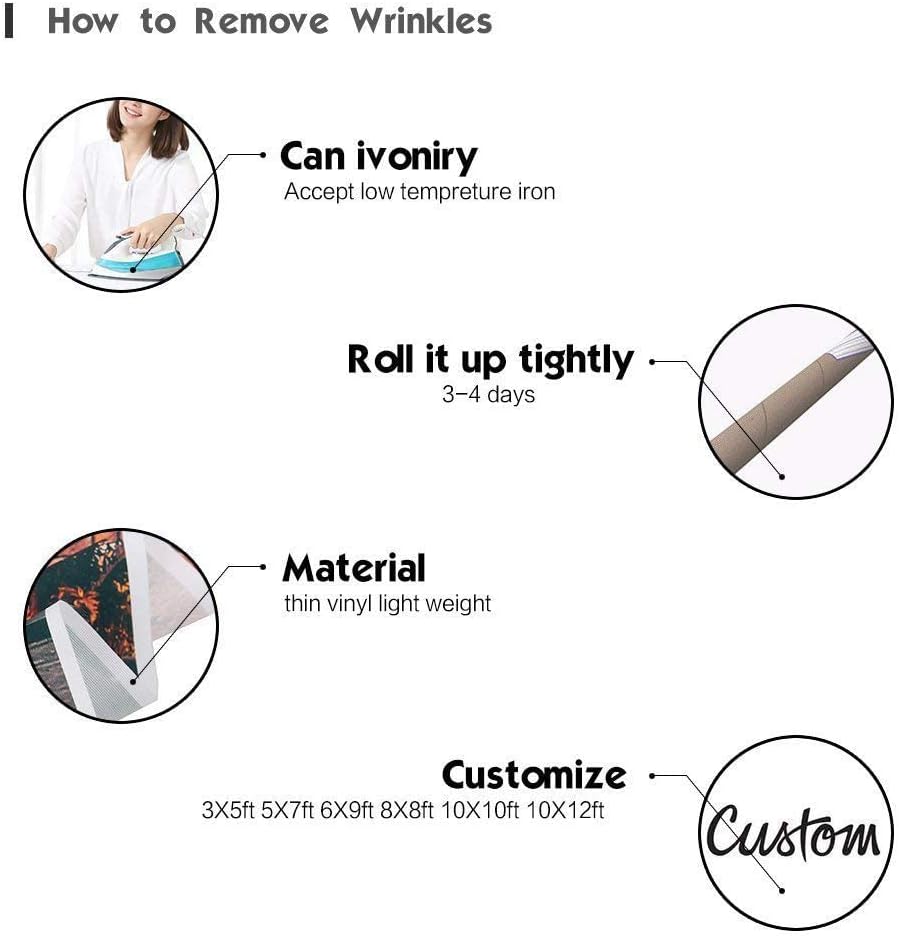 • Usage: Item ent folded. Resulting in crease.The recovery methods as following:1.you can roll the backdrop tightly with your paper tube for 2-4 days.2.Hang the backdrop for 1-3 days, the wrinkles will gradually reduce.3.you can iron the back surface with steam iron but not dry iron. Iron it with low heat.