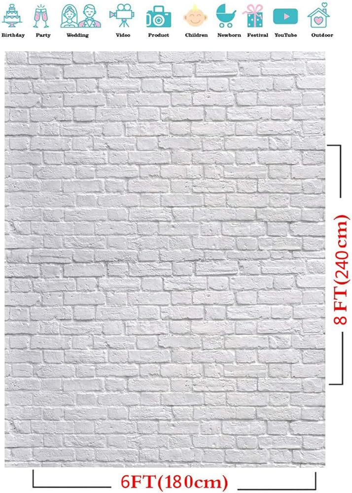 [العبوة] قطعة واحدة فقط مقاس 5 أقدام × 7 أقدام (عرض 1.5 متر × ارتفاع 2.1 متر) خلفية حائط من الطوب الأبيض. لا يتم تضمين حامل الخلفية أو المشابك.