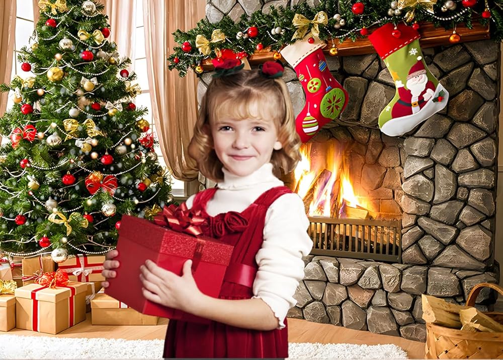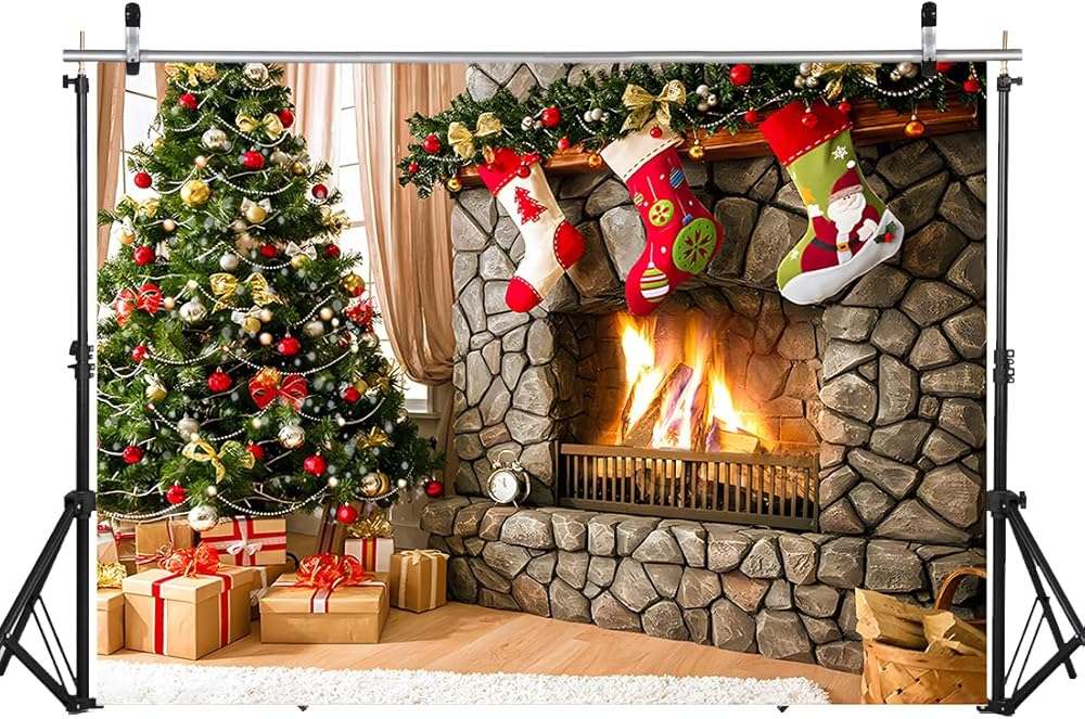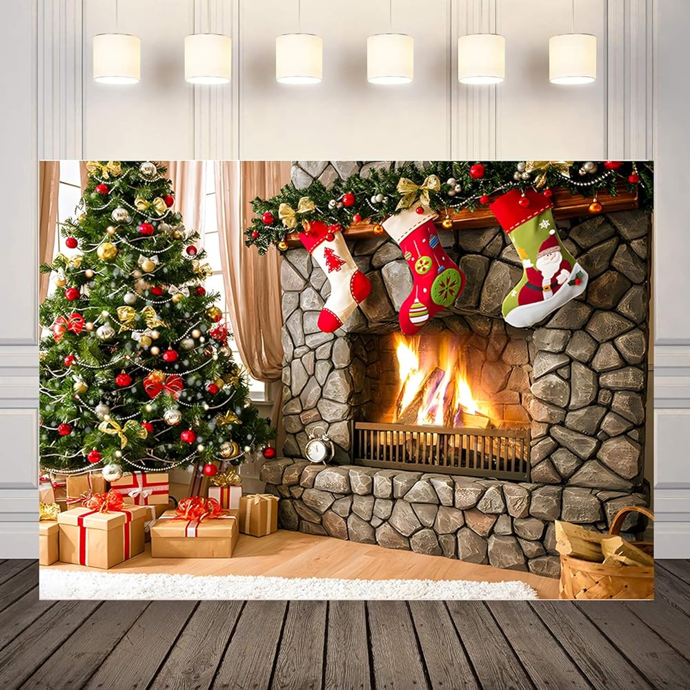 lycgs 7x5ft عيد الميلاد خلفية عيد الميلاد التصوير الخلفيات عيد الميلاد الموقد خلفية أشجار عيد الميلاد هدايا عيد الميلاد الخلفيات عيد ميلاد سعيد الأسرة عطلة الديكور راية X-170