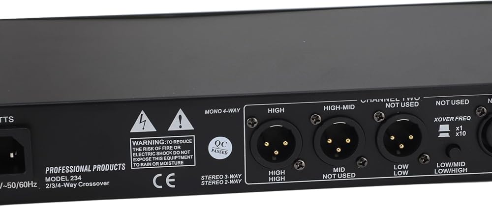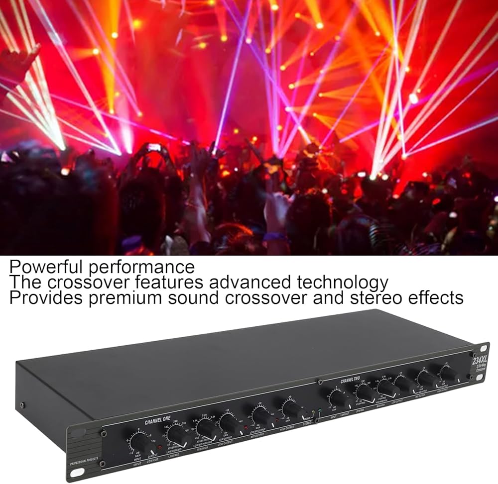 1. POWERFUL PERFORMANCE: The crossover is equipped with advanced technology to provide premium sound crossover and stereo effect.2. MULTIFUNCTIONAL DESIGN: 234XL crossover is suitable for stage performance and other scenes, providing a comprehensive solution for sound signal distribution and processing.3. STABLE AND RELIABLE: The mono 4 way crossover is fine manufactured to ensure the stability and reliability of the unit.4. EASY TO USE: 234XL mono 4 way crossover is easy to operate, suitable for all kinds of users, no need for professional skills.5. PREMIUM MATERIAL: 234XL mono 4 way crossover is made of premium ABS material, which is , not easy to be damaged and has a long service life.Specification:Item Type: 234XL CrossoverMaterial: ABSVoltage: US Plug 110VFrequency: 50 60HZImpedance: Balanced>50k Ohm, Unbalanced>25k OhmFrequency Response: 94dB >94dBHigh Frequency Output: >92dB >92dBpacking list:1 x Crossover 1 x Power Cord 1 x Instruction Manual
