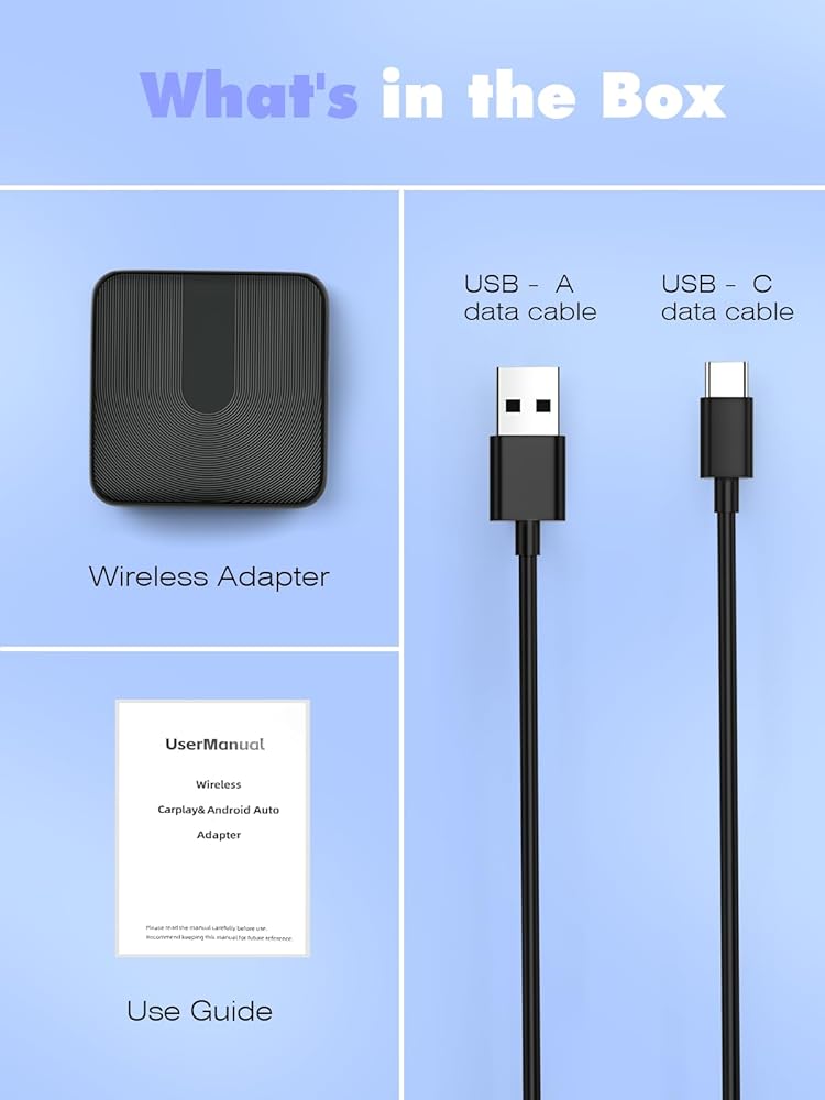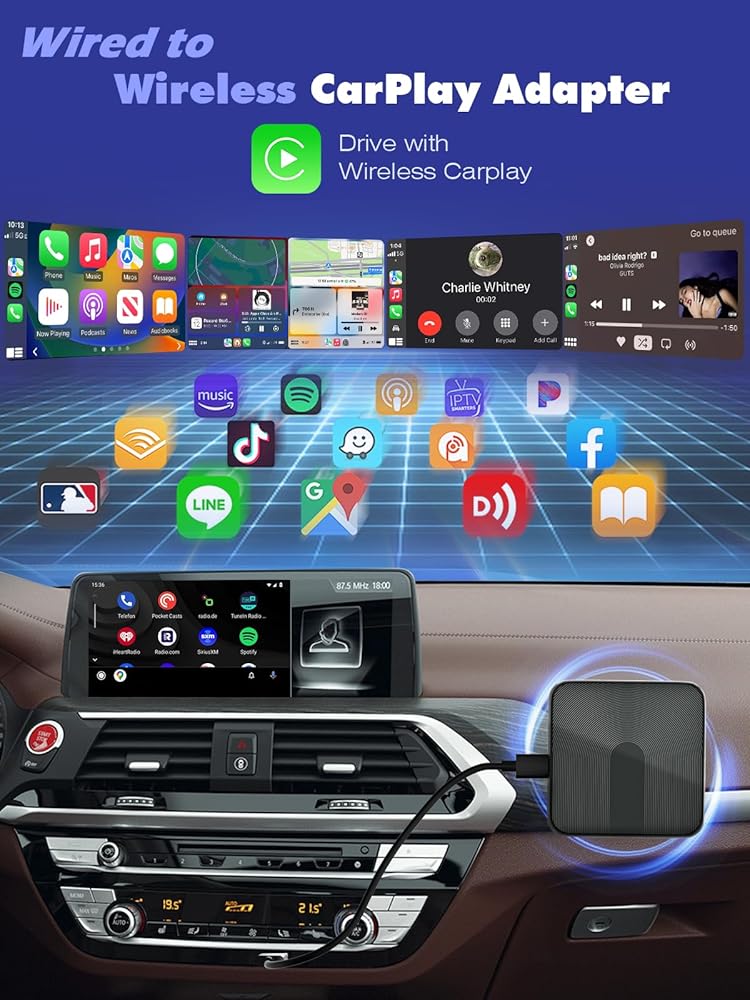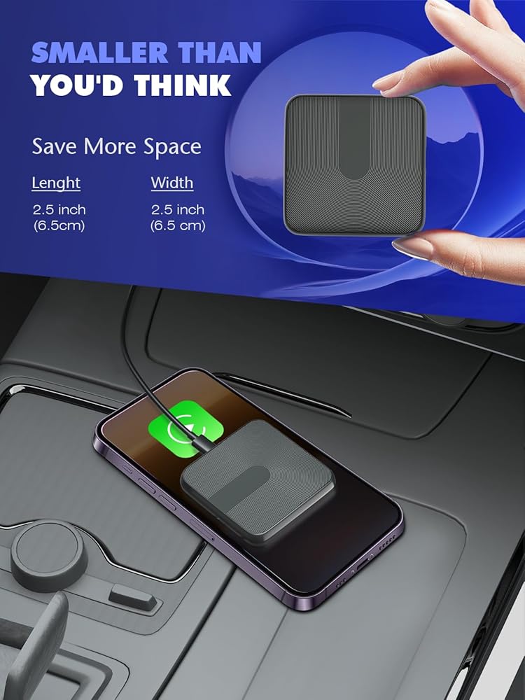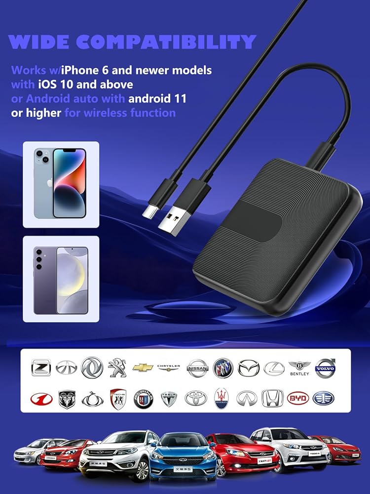 • توافق واسع: يتوافق محول Carplay اللاسلكي الخاص بنا مع iPhone 6 والموديلات الأحدث التي تعمل بنظام iOS 10 وما فوق أو Android auto مع android 11 أو أعلى للوظيفة اللاسلكية. متوافق مع ميكروفون السيارة الأصلي وجودة الصوت