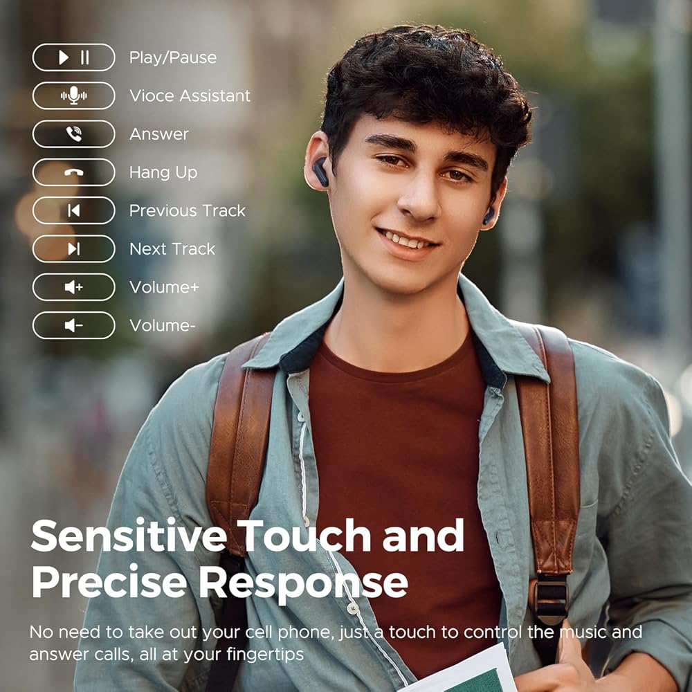 【زمن استجابة منخفض وتحكم ذكي باللمس】يسمح لك التحكم الذكي باللمس في سماعات الأذن اللاسلكية T3 Pro المزودة بميكروفون بالتحكم في تشغيل الموسيقى والرد على المكالمات والمزيد بلمسة واحدة فقط. يعد وضع زمن الوصول المنخفض مثاليًا لمشاهدة مقاطع الفيديو والألعاب، مما يضمن مزامنة الصوت والمرئيات بشكل مثالي للحصول على تجربة ترفيهية محسنة