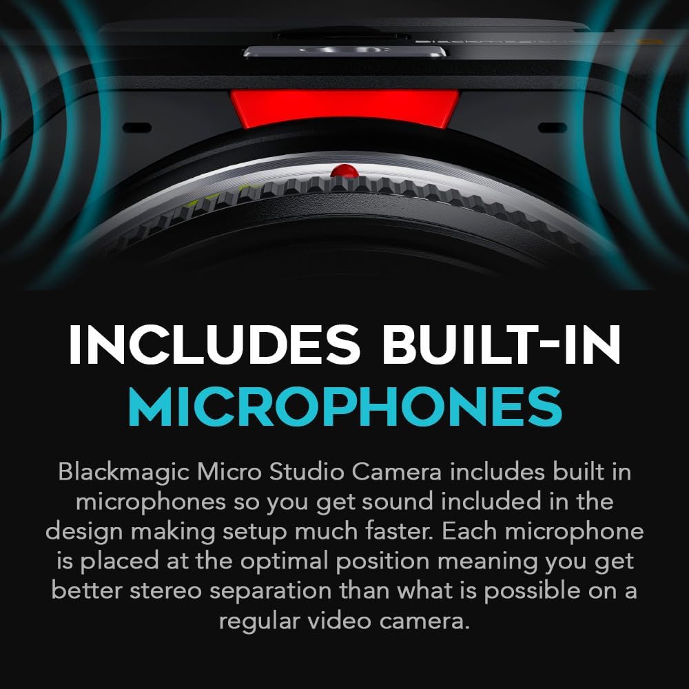 The Blackmagic Micro Studio Camera 4K G2 is the perfect solution for placing cameras on set when you don't have space for regular-sized cameras. It includes the popular MFT lens mount, very low light 4K image sensor and cinematic color science. So it's small, but has the features of a full-sized studio camera. You also get 12G-SDI for HD and Ultra HD operation up to 2160p60. It's also possible to control the built-in color corrector and lens using the SDI and HDMI connections. It can even record Blackmagic RAW to USB disks. Plus Blackmagic Micro Studio Camera 4K goes well beyond broadcast quality with log gamma, allowing you to create cinematic color-corrected looks, all in camera.