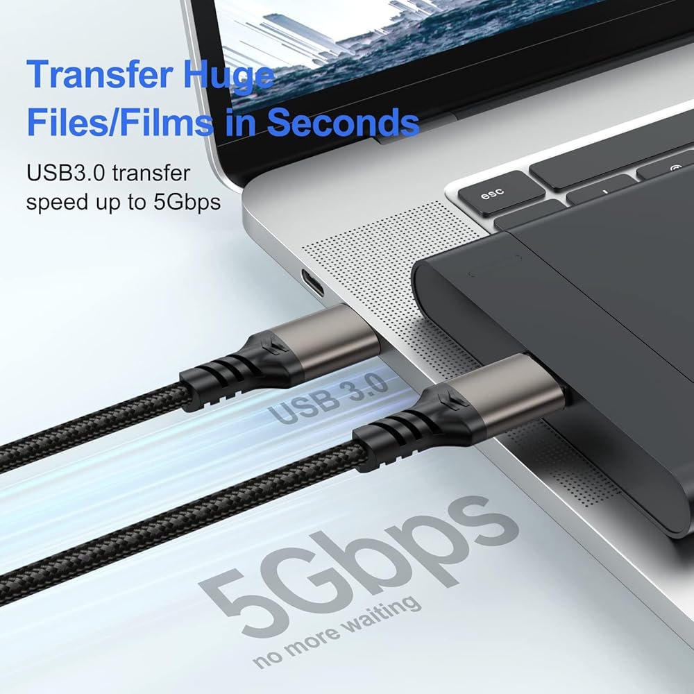 【5Gbps Data Faster】USB A cable supports up to 5Gbps data transfer,10 times faster than USB2.0 cables, which can transfer your large files just in seconds.