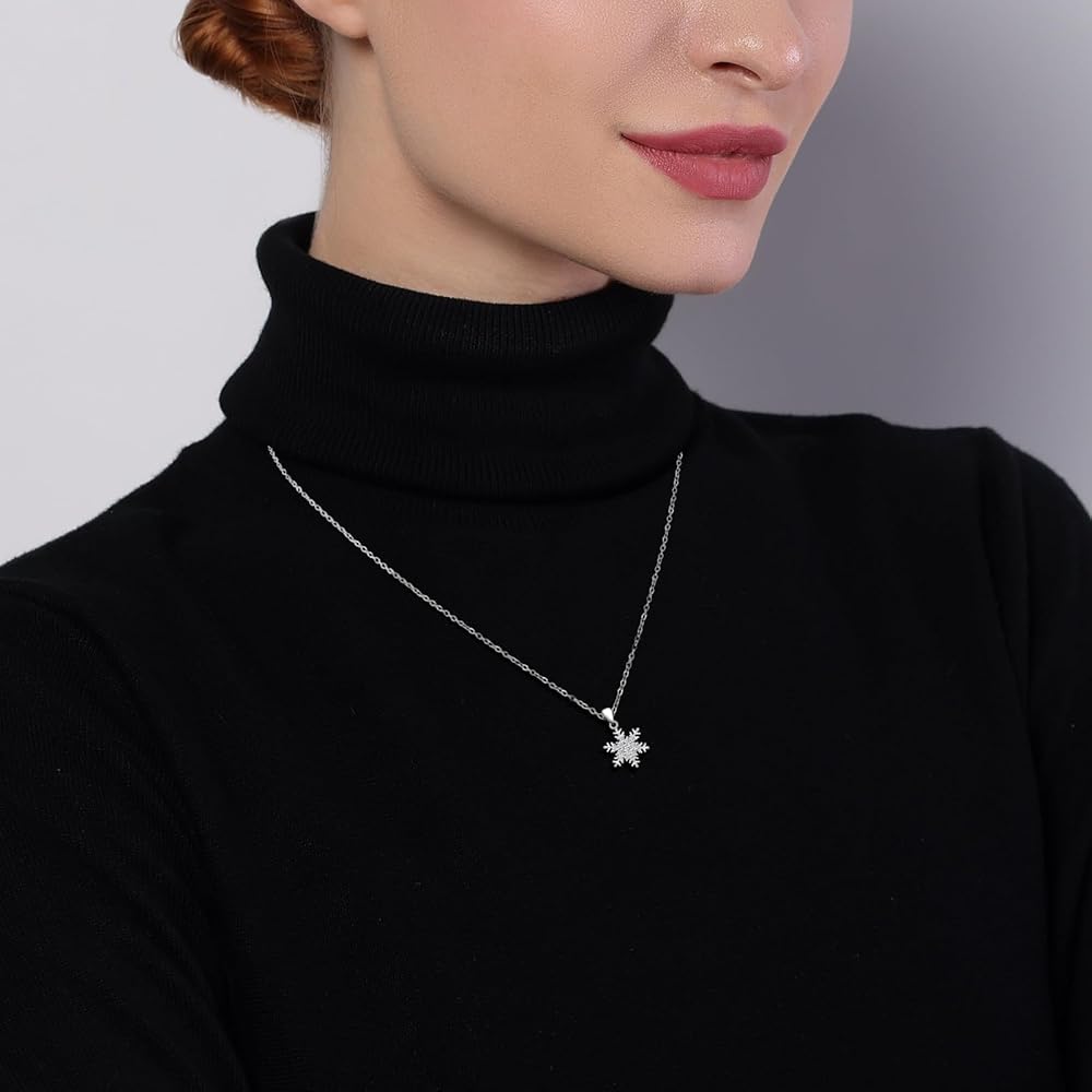 [مادة عالية الجودة] القلادة المتدلية على شكل ندفة الثلج مصنوعة من الفضة الإسترلينية المطلية بالبلاتين. لن يبهت أو يصدأ، كما أنه خالي من مادة BPA والنيكل والكادميوم والرصاص، مما يجعله مضادًا للحساسية.