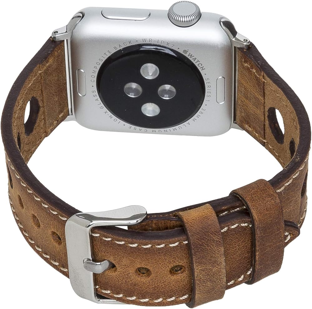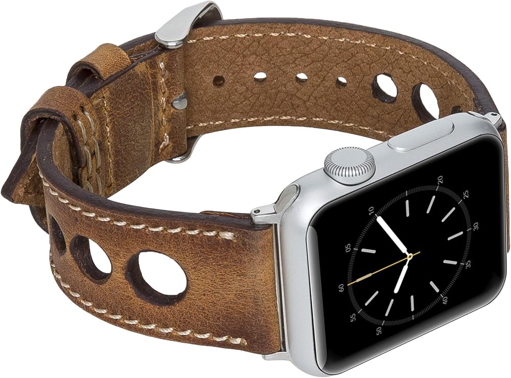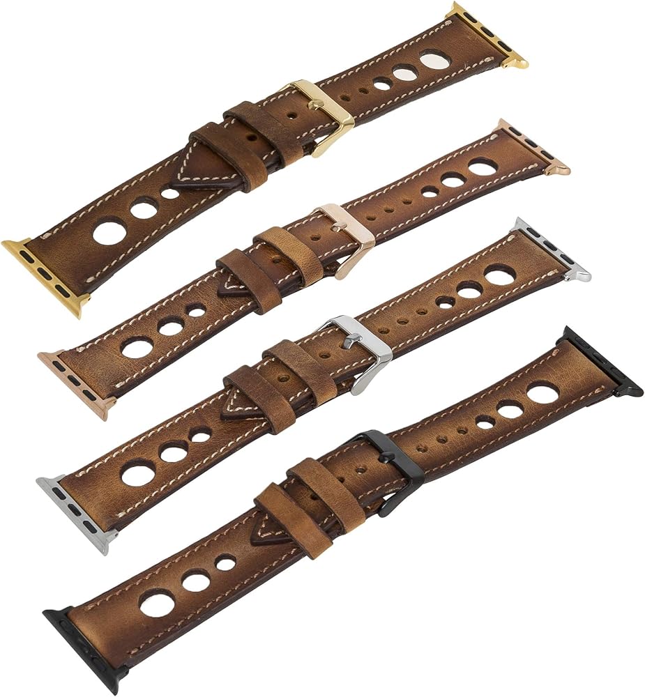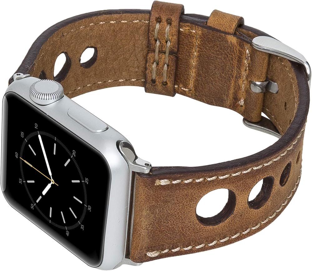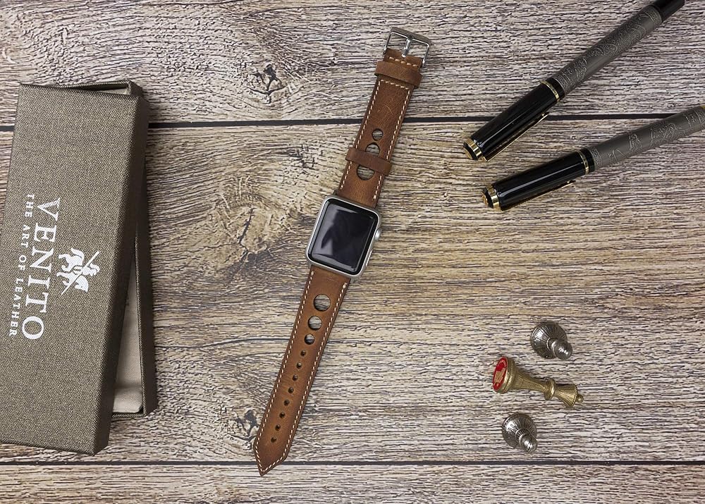 VENITO TARANTO NEW STYLE (RICHED WITH MULTIPLE HOLES AND SINGLE-LINE STITCHES ) HANDCRAFTED FULL GRAIN LEATHER SLIM WATCH BAND, COMPATIBLE WITH ALL SERIES APPLE WATCHES- Series SE,7,6,5,4,3,2,1,&; WITH TRIANGLE-SHAPED TIPS 1 - PLEASE SELECT YOUR CORRECT APPLE WATCH SIZE (38-40mm) or (42-44mm)