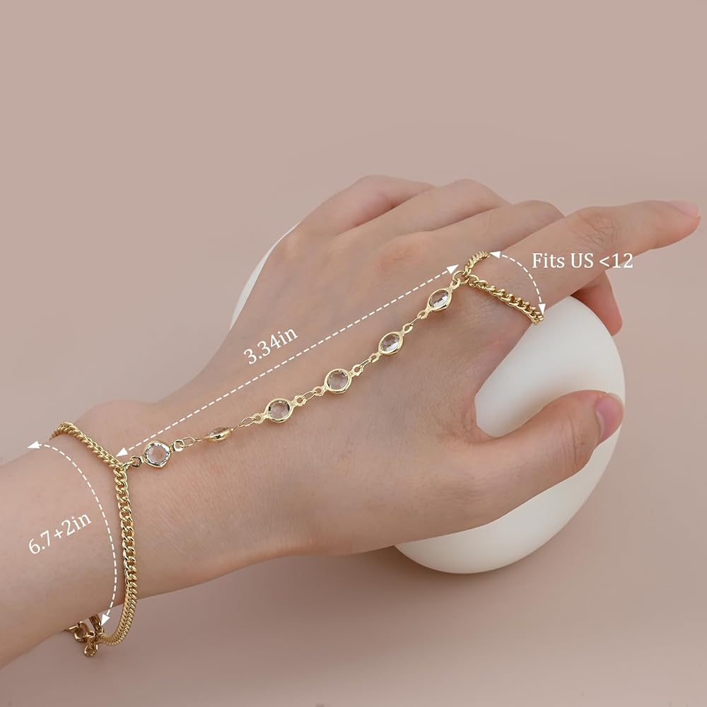 [Finger Bracelet] Our bracelet ring hand chain size can be adjust, adjust from 6.7 to 8.7 inches, with a few zircon and a link length of 3.3 inches to the ring. You can choose the finger to wear according to your preference, and the specific size can refer to the picture.