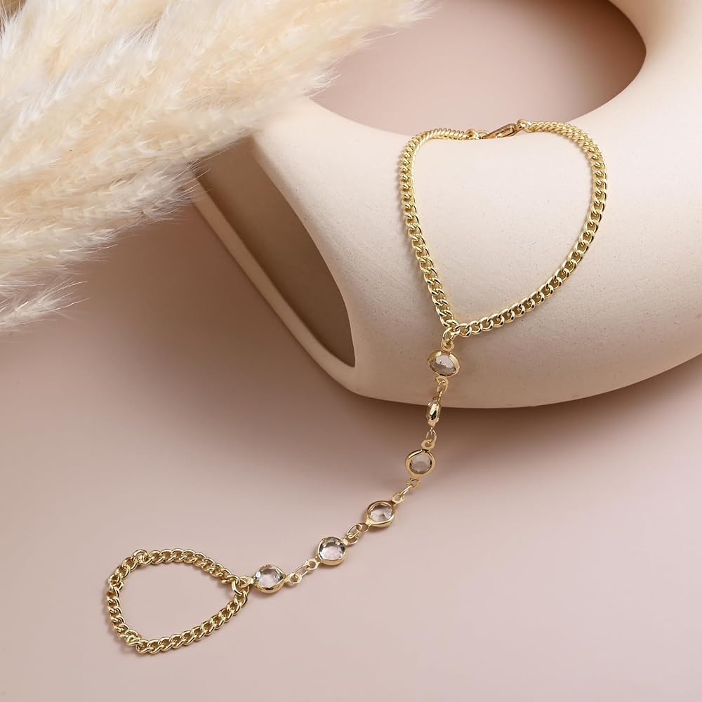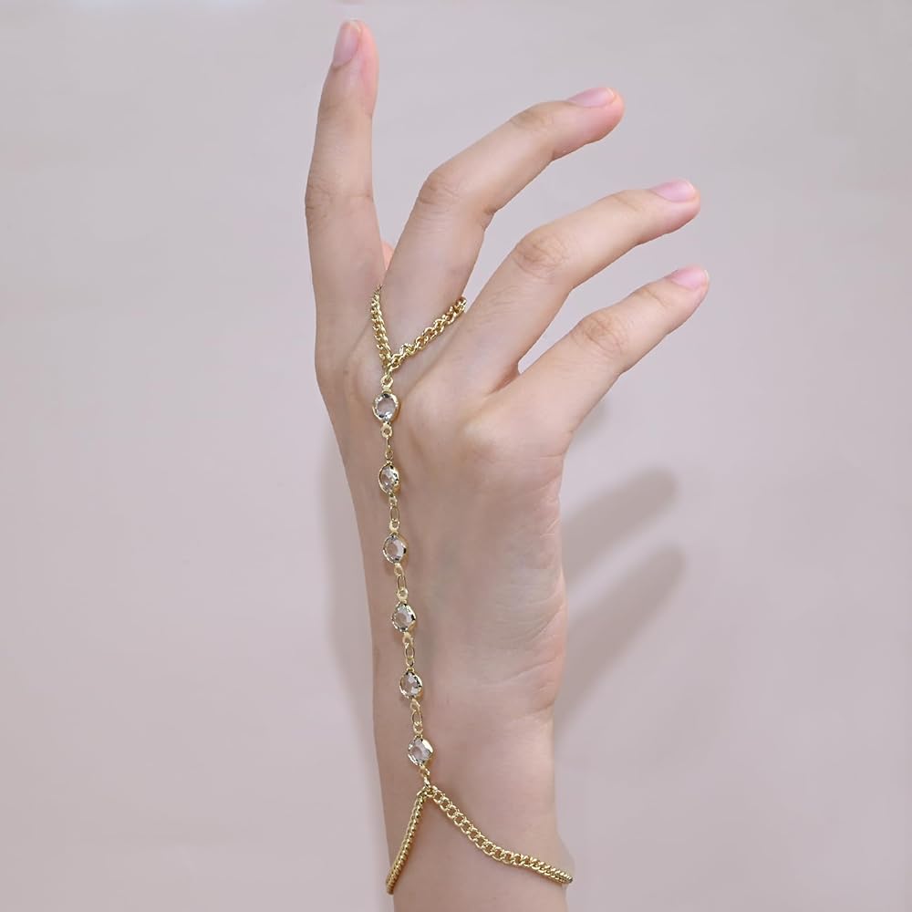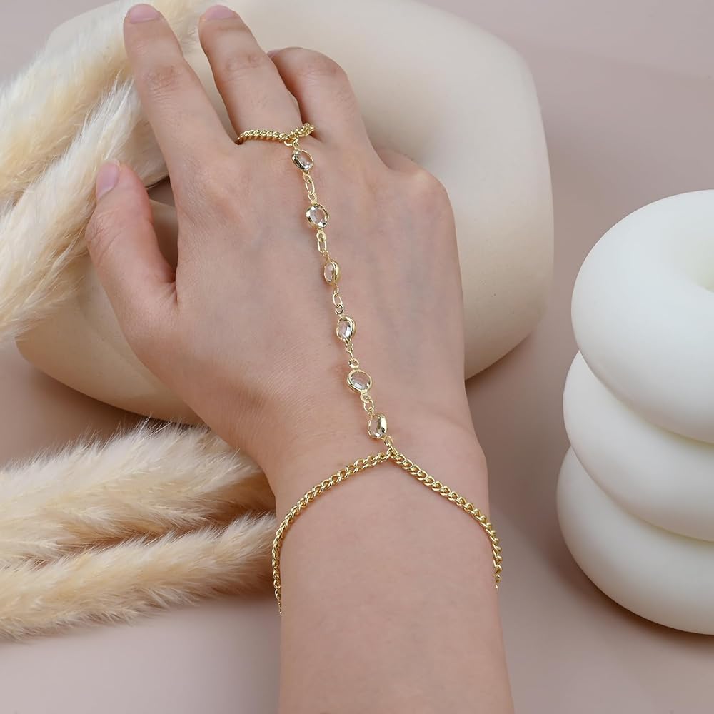 [Fashion Hand Chain Bracelet] This bracelet connects the bracelet and ring together, making the fingers look more slender, minimalist design, making it a unique fashion style. The zircon accents are eye-catching, it can be worn alone or stacked with other bracelet, making it an excellent addition to daily jewelry.