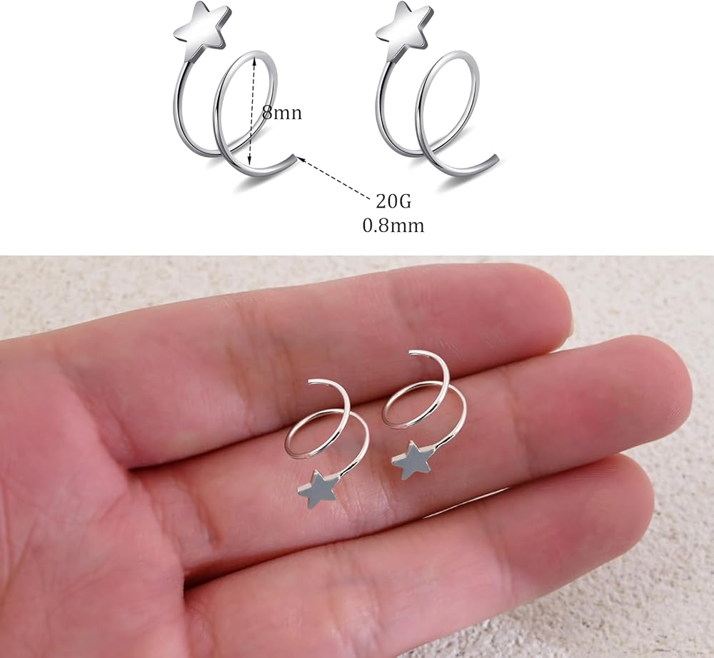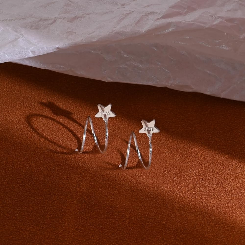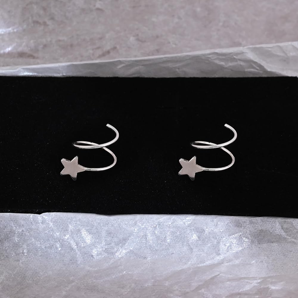 925 Sterling Silver Double Twist Hoop Earrings Tiny Star Spiral Second Hole Earrings Cartilage Double Hoop Piercing Earrings for Women Trendy