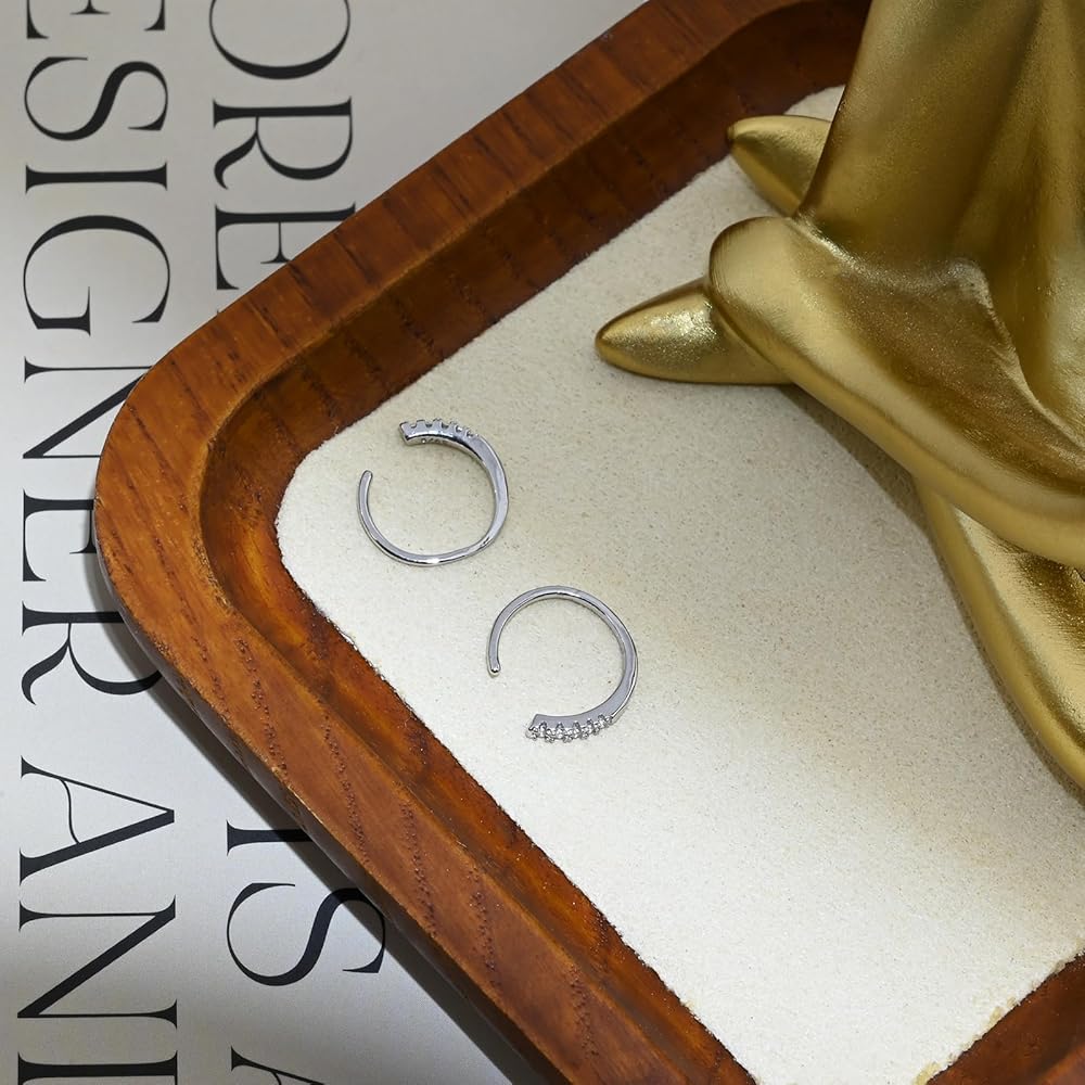 • [Minimalist Earrings] This pull through earring is different from other pull through earrings, it is adorned with a few small zircon stones at the tail to add a sparkling effect. The overall design is simple yet stylish.